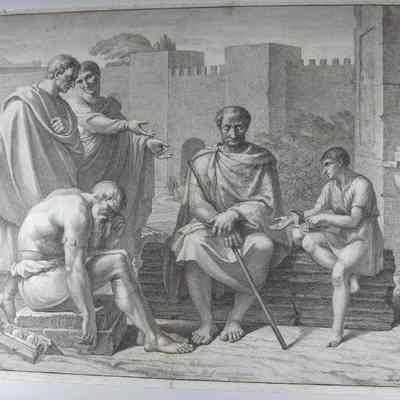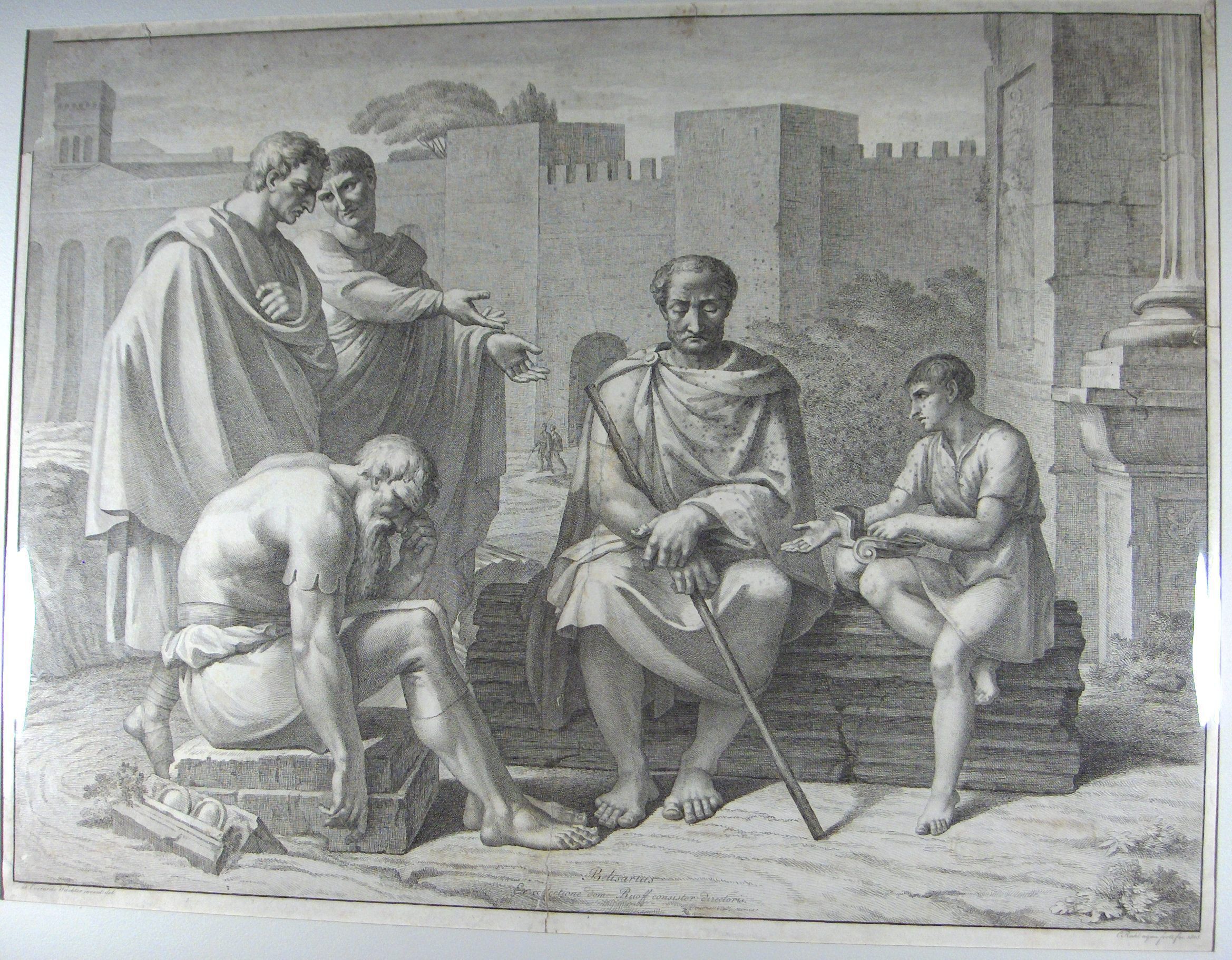 Engraving, Artwork, Ink, Belisarius, Roman, Men, Staff, Town, Ruins, general, Engraving, Artwork, Ink