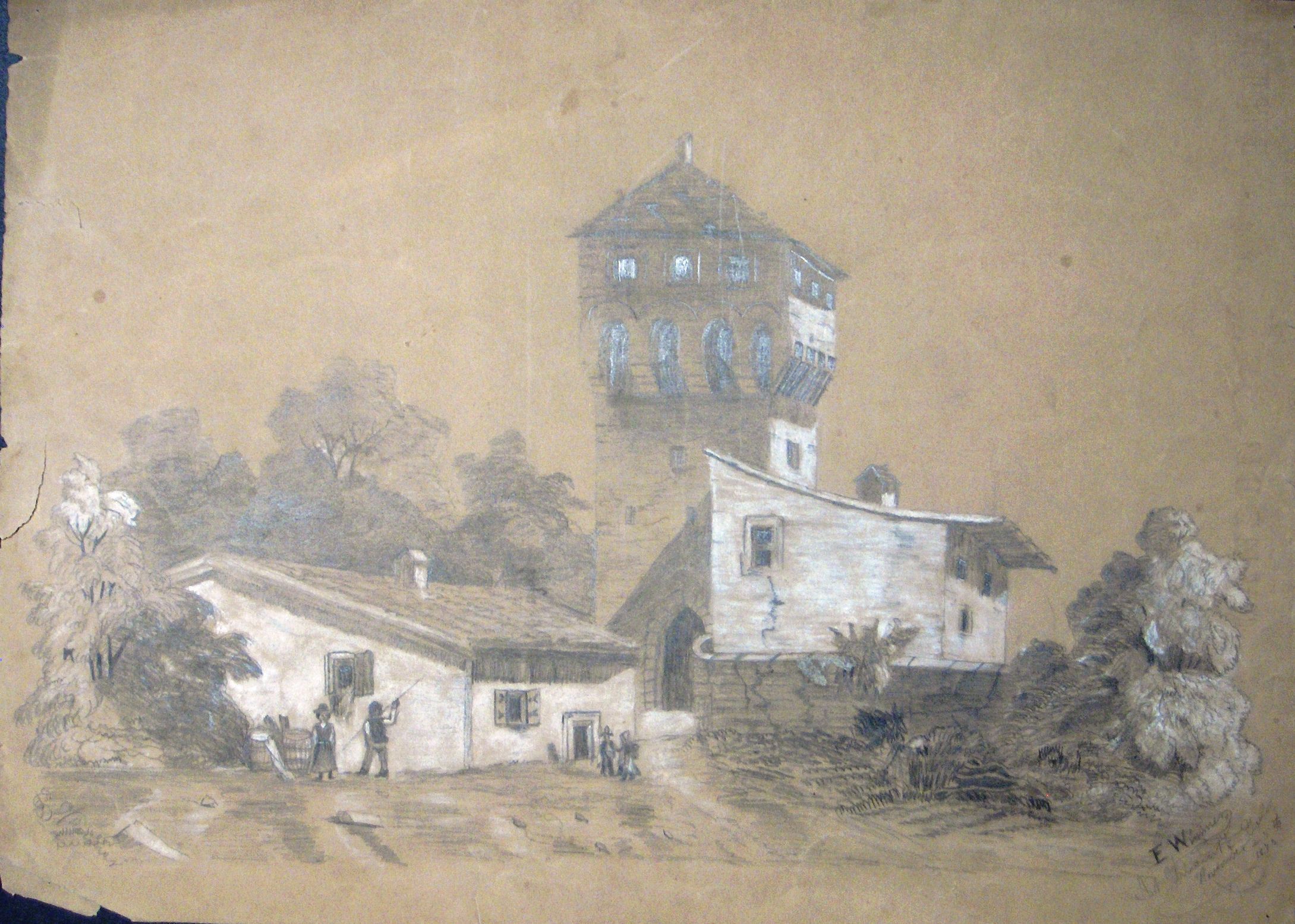 Graphite, Wash, Chalk, Paper, Drawing, Buildings, Europe, Graphite, Wash, Chalk, Paper, DrawingDimensions