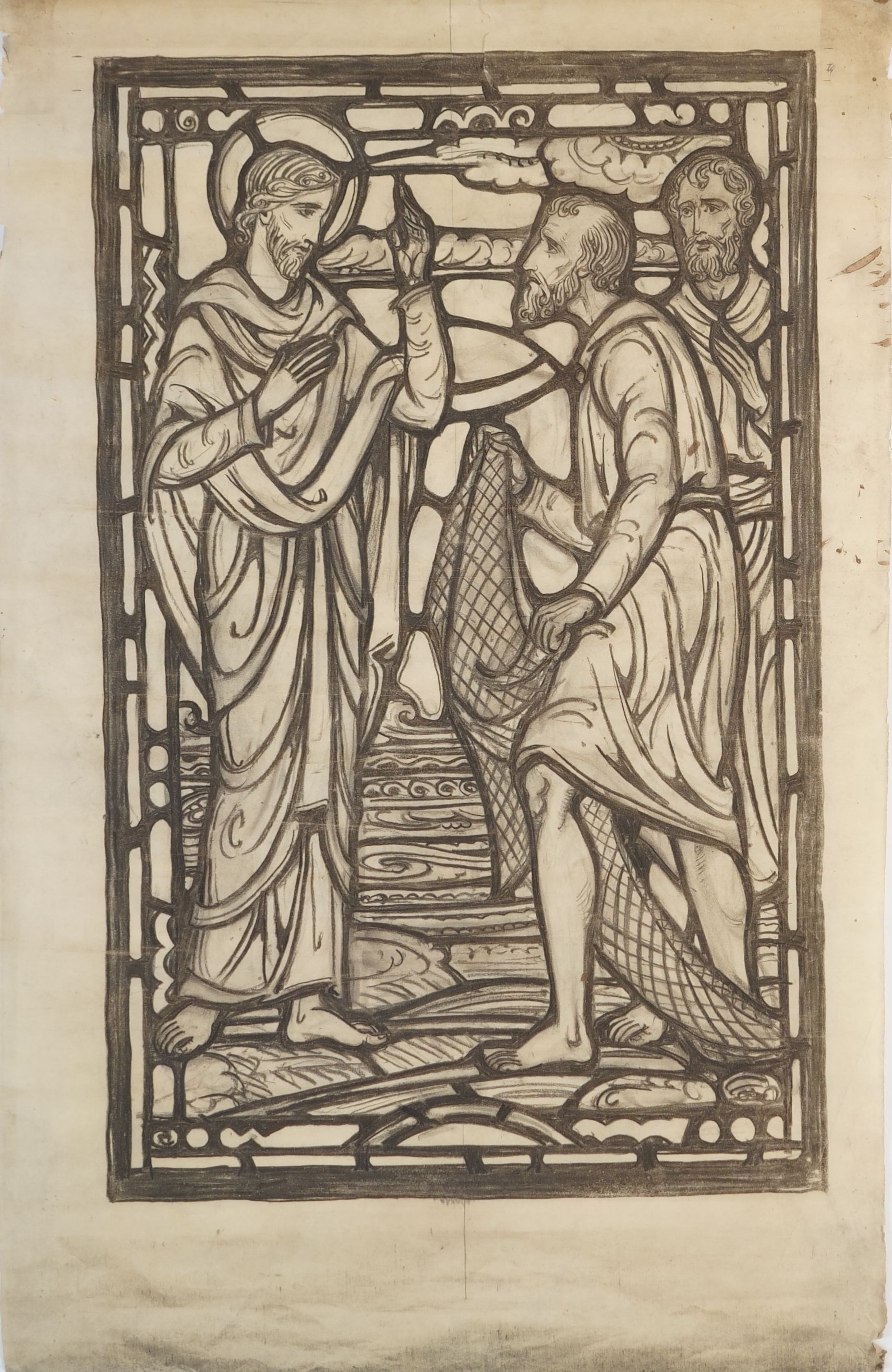 Stained glass scale cartoon, Myers Park Methodist Church, Charlotte NC. Depicts Christ instructing Simon to cast the nets again (Lk 5:4-11).Type of Drawing