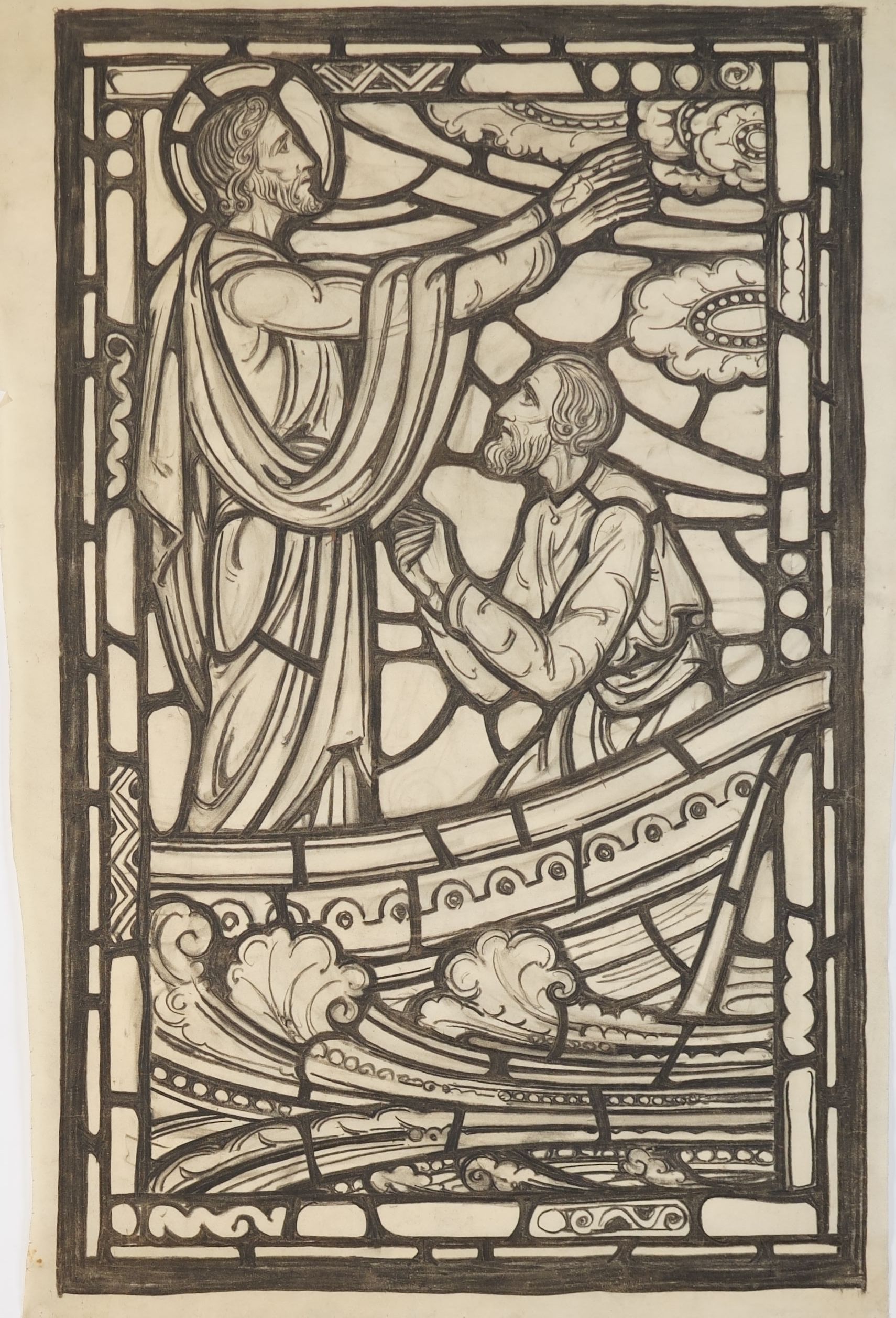 Stained glass scale cartoon, Myers Park Methodist Church, Charlotte NC. Depicts Christ stilling the tempest/storm.Type of Drawing