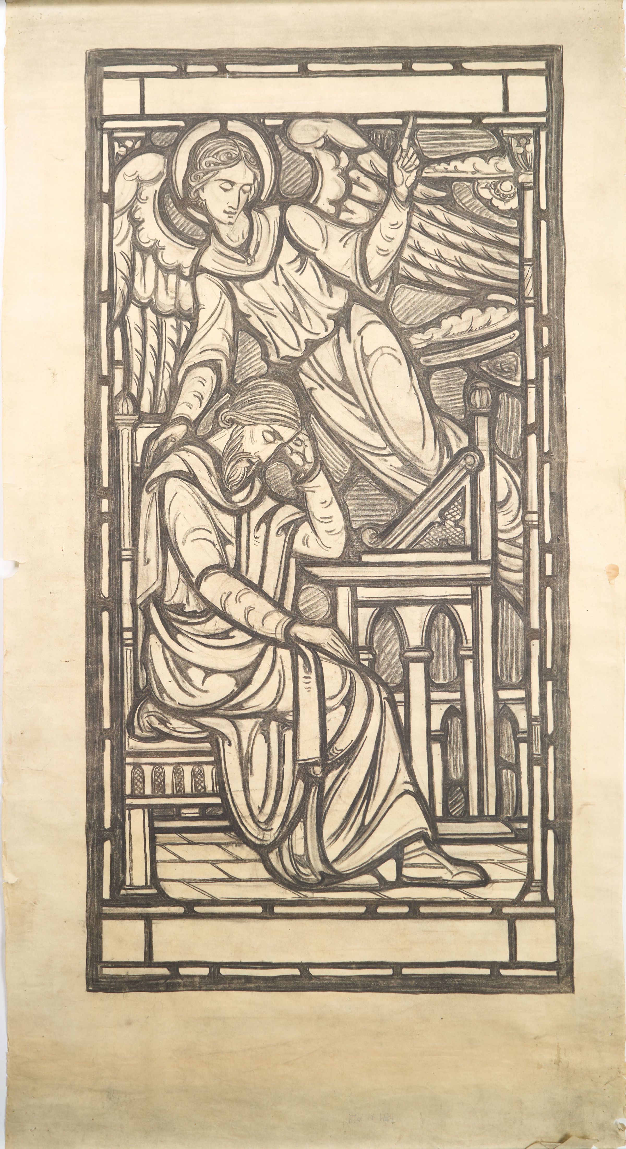 Stained glass scale cartoon; Myers Park Methodist Church, Charlotte, NC. Depicts an archangel visiting St. Joseph in a dream, telling him not to be afraid and that Mary has conceived.Type of Drawing