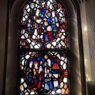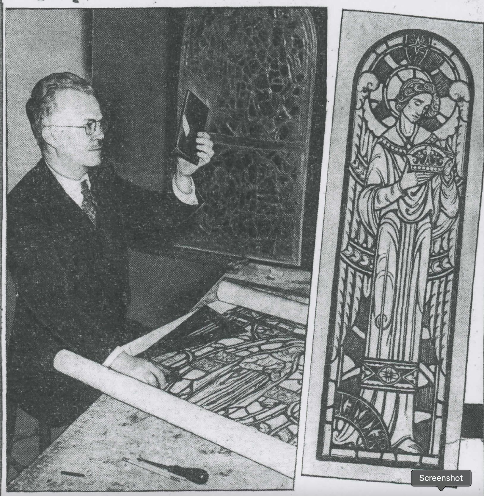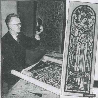 In the black and white newspaper clipping from the December 18, 1939 edition of the Pittsburgh Press, this completed window can be seen behind A. L. Pitassi.