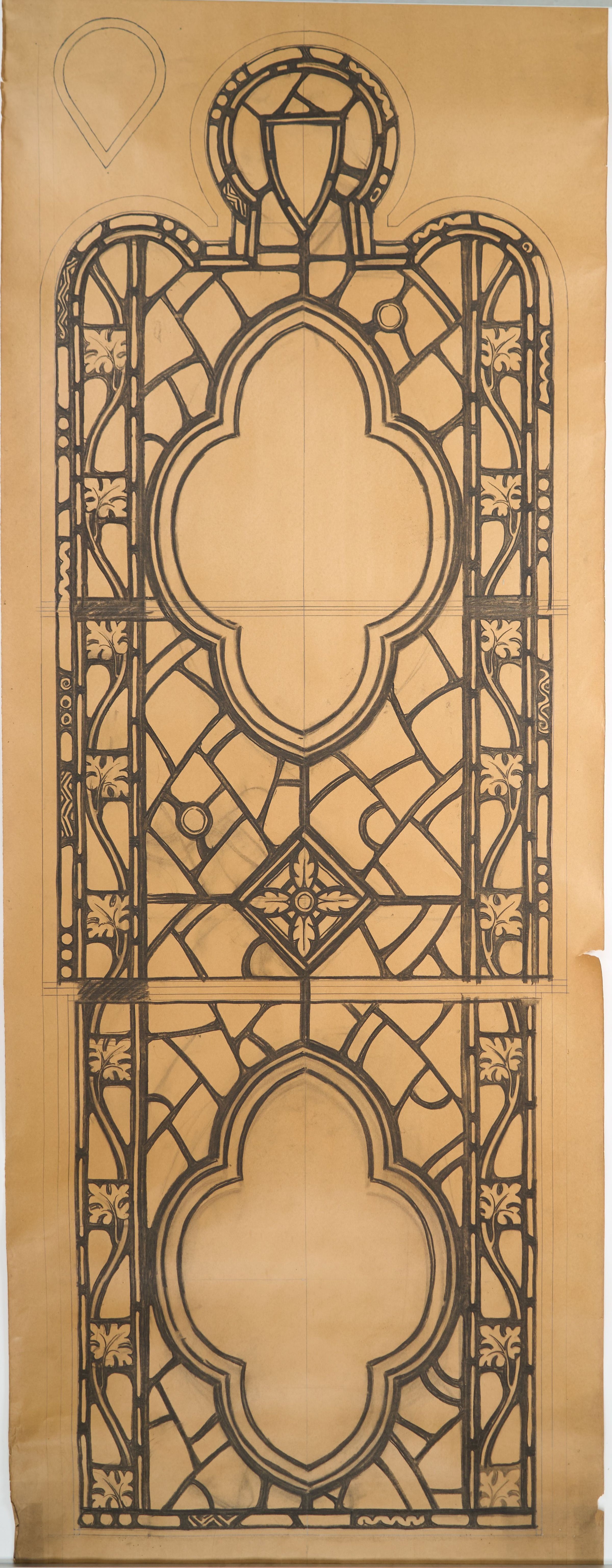 Stained glass scale cartoon, St. Gregory the Great Catholic Church in Chicago, IL. An outline for medallions for a clerestory window. This is almost an exact copy of 2021.1.90Type of Drawing