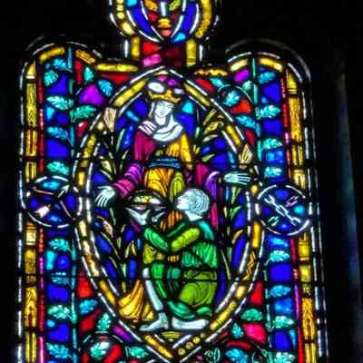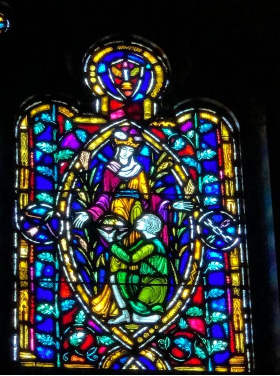 Chicago, IL - Left Light of Window of Blessed Virgin Mary Side Door - Holofernes Invites Judith to DineEntry/Object ID