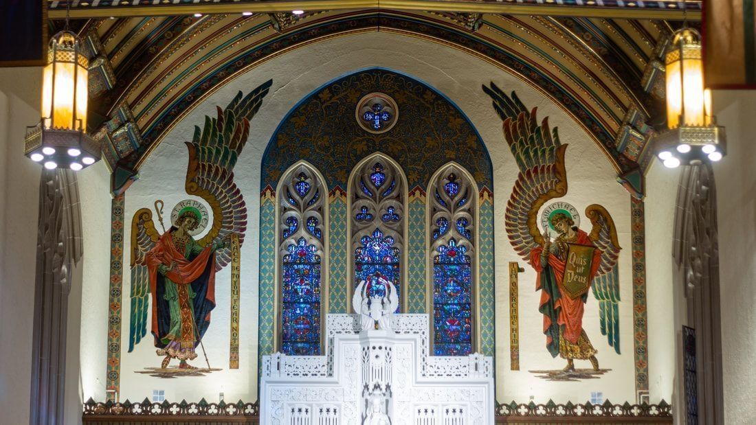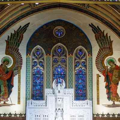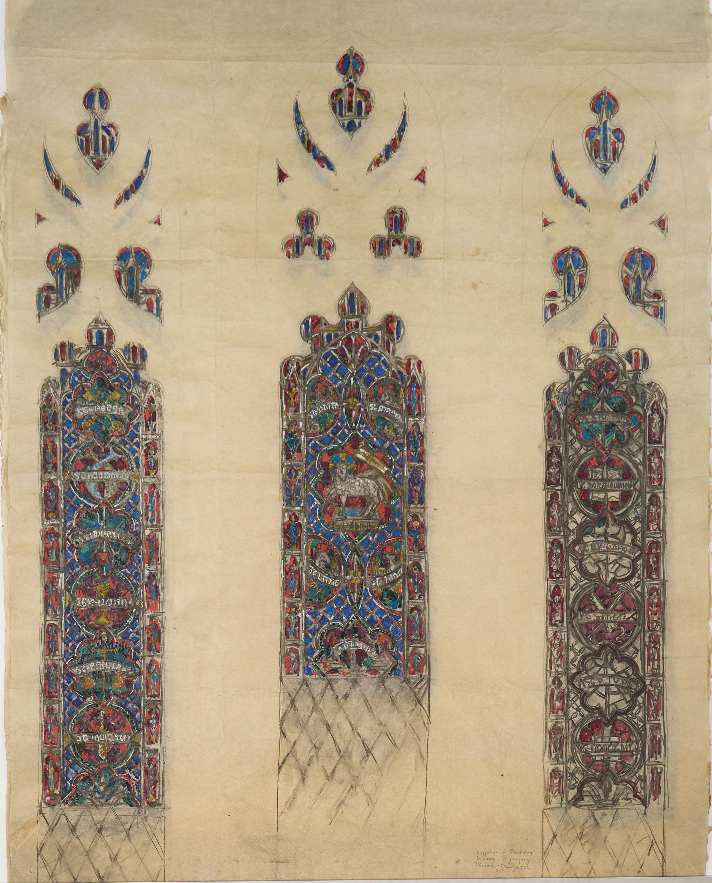 Stained glass scale sketch of the chancel window behind the altar in St. Gregory the Great Catholic Church, Chicago, IL.