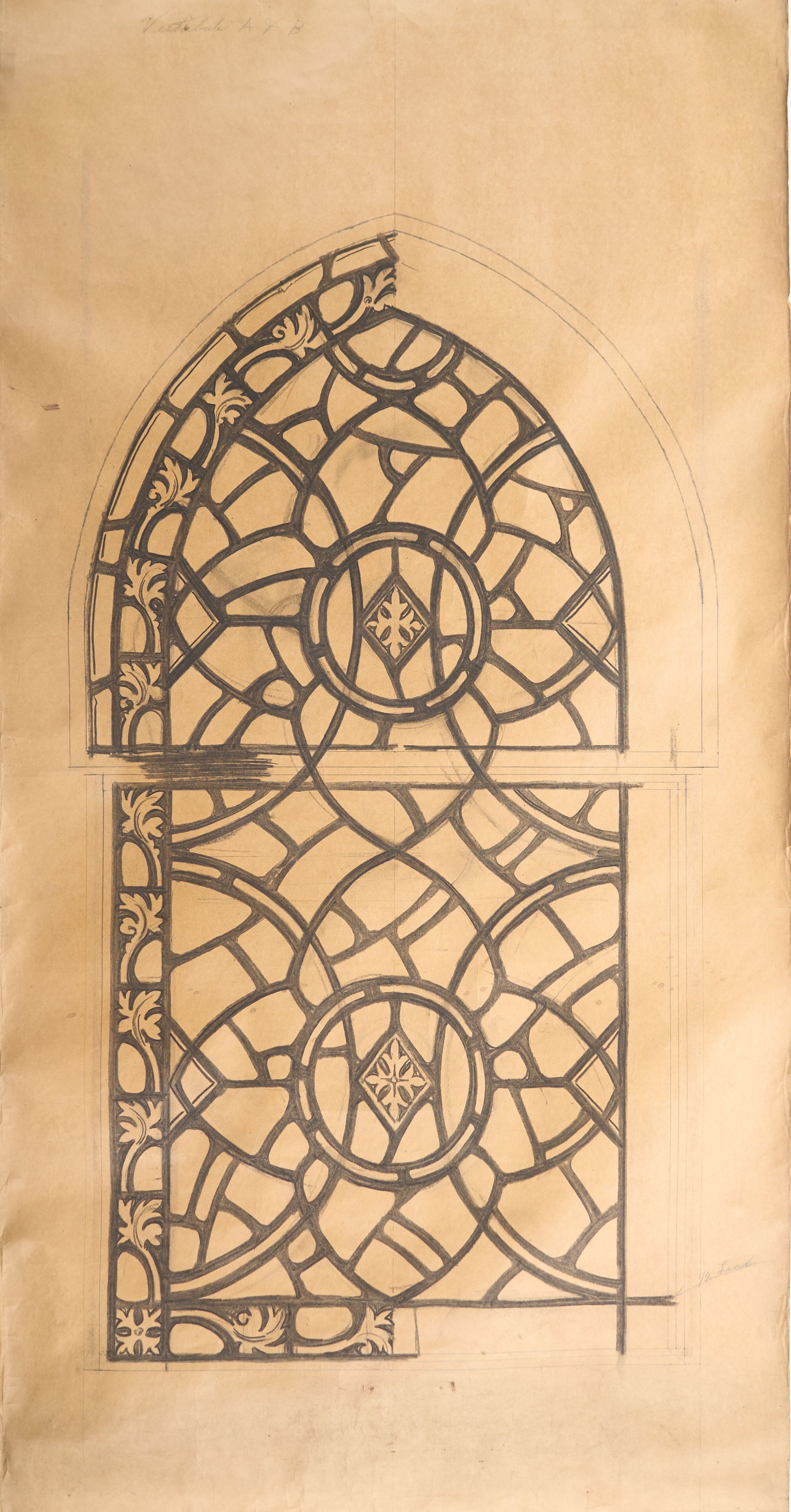 Stained glass scale cartoon; St. Gregory the Great Church, Chicago, IL. Vestibule grisaille window.Type of Drawing