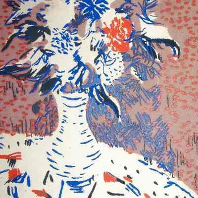 Print, Ink, Paper, Girard, Girard, Andre, Andre Girard, Christmas Card, Flower, Flowers, Vase, Arrangement, Print, Ink, Paper