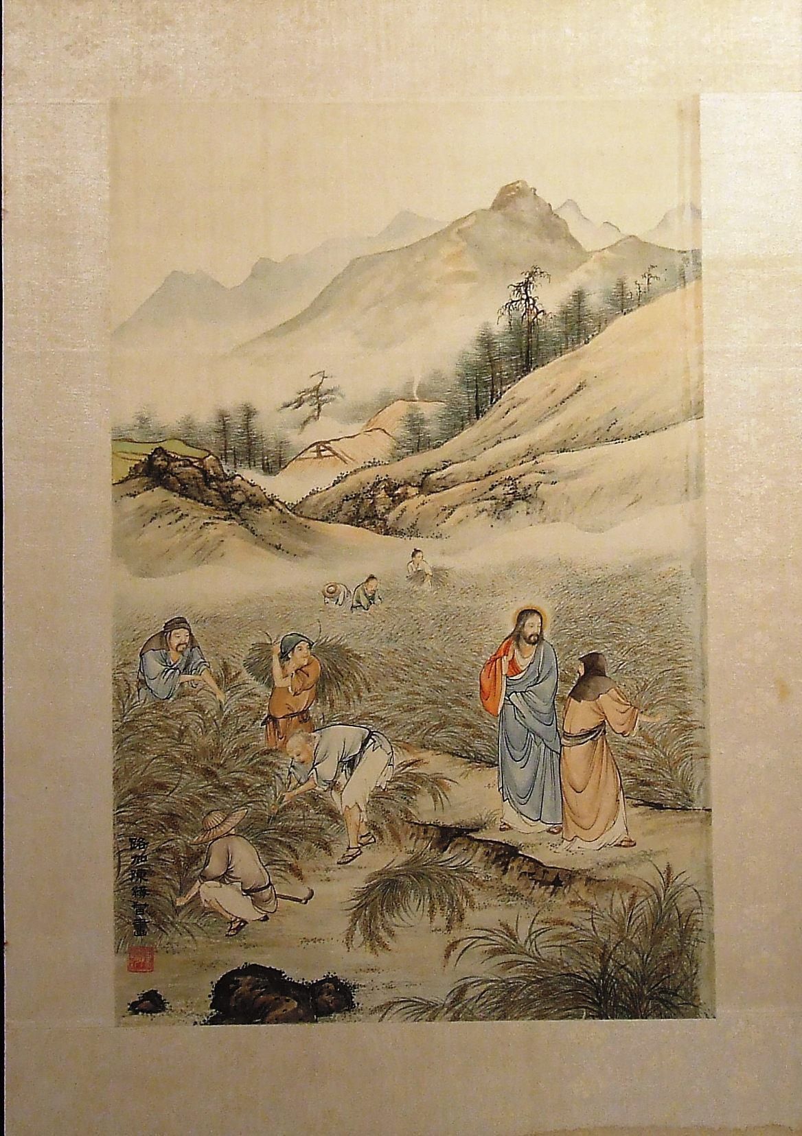 Watercolor, Painting, Silk, Ch'en, Luke, Luke Ch'en, Ch'en, Watercolor, Painting, Silk, Christ in the Harvest, Chinese, Christ, Jesus