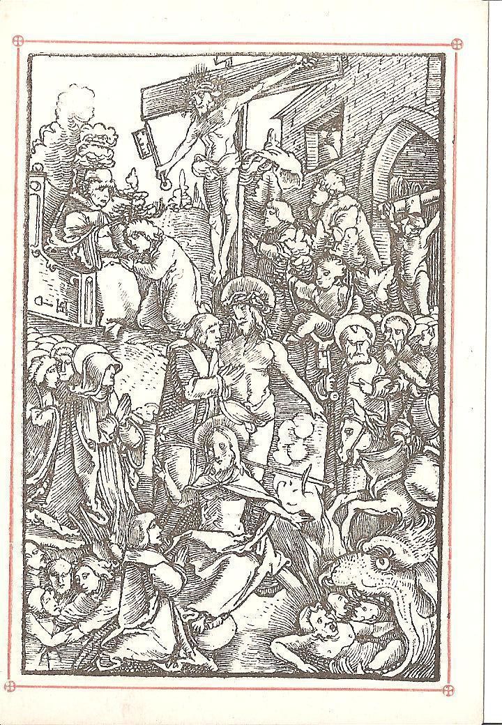 Ink, Paper, Print, Lithograph, Schongauer, Martin, Martin Schongauer, Schongauer, Albrecht Durer, Durer, Albrecht, Durer, Ink, Paper, Print, Lithograph, Prayer Cards, Religious, Religious Subject Matter, Doubting Thomas, Jesus, Christ, Cross, Peter, Key, Heaven, Mary, Angel, Monster, Pope, Saint