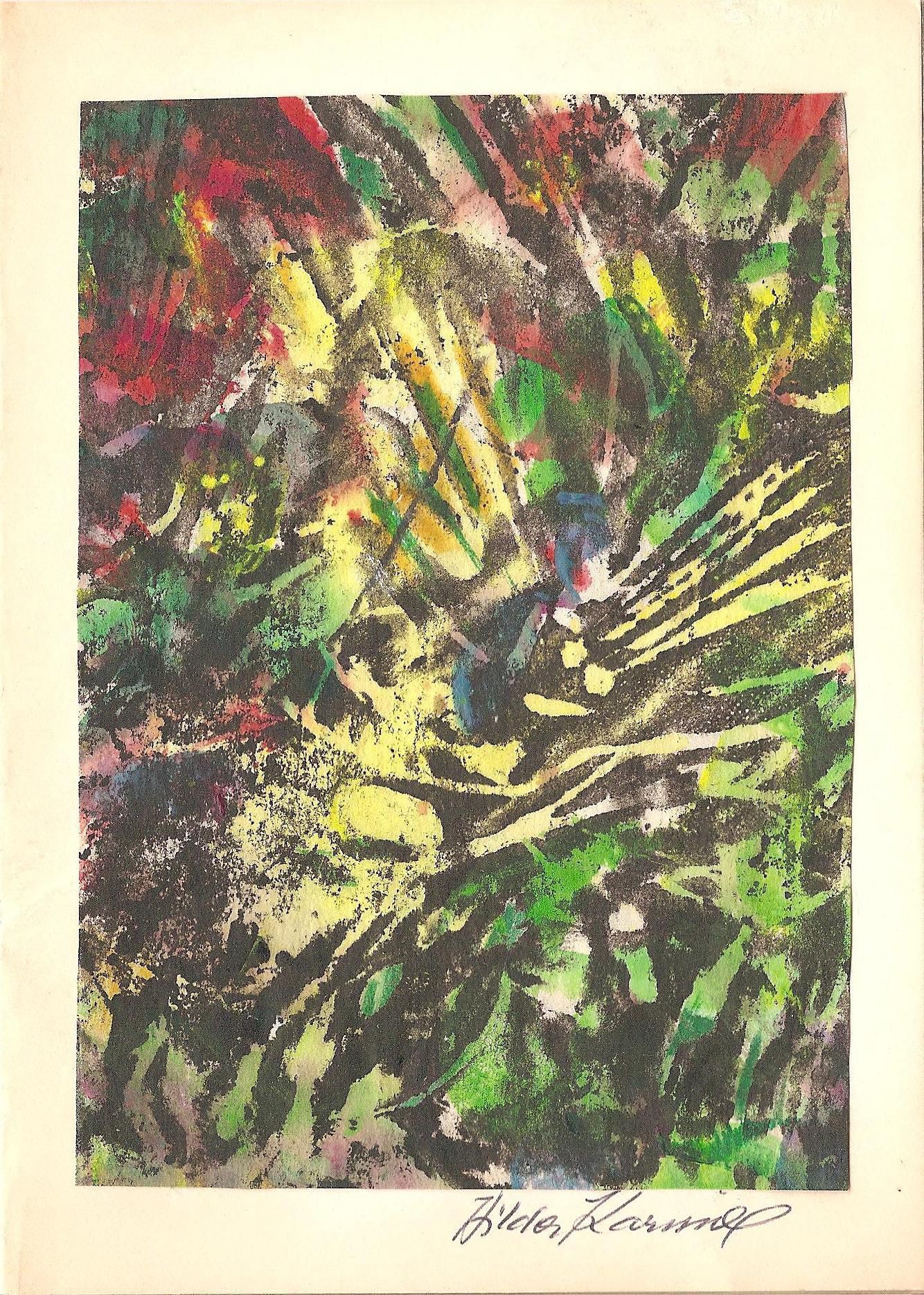 Ink, Paper, Print, Ink, Paper, Print, Card, Christmas Card, Abstract, Colors, Red, Yellow, Green, Painting, Karniol, Hilda Karniol, Karniol, Hilda