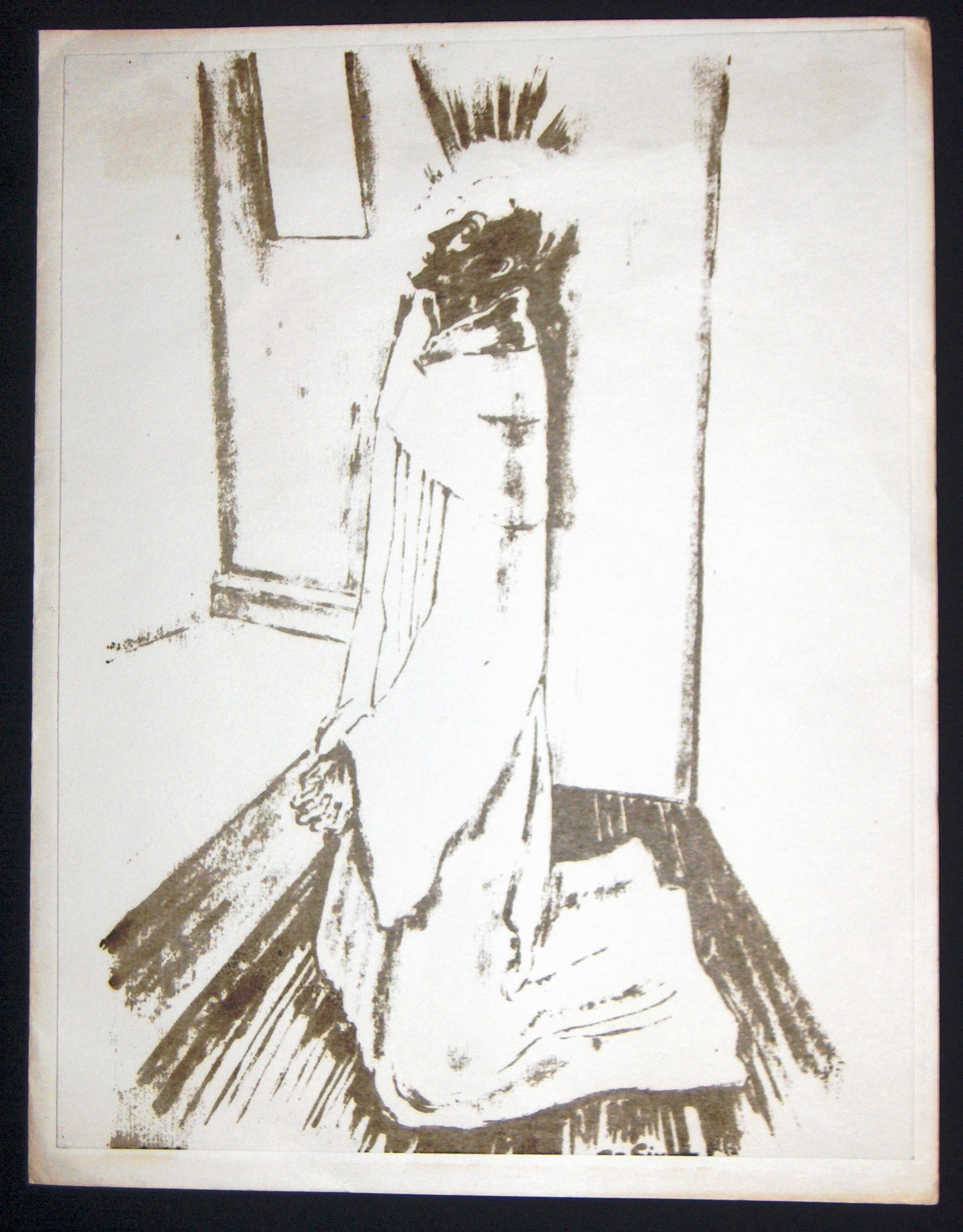Ink, Paper, Print, Card, Christmas Card, Monk, Prayer, Praying, Kneel, Ink, Paper, Print, Girard, Girard, Andre, Andre Girard