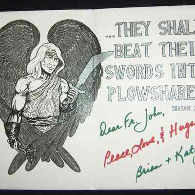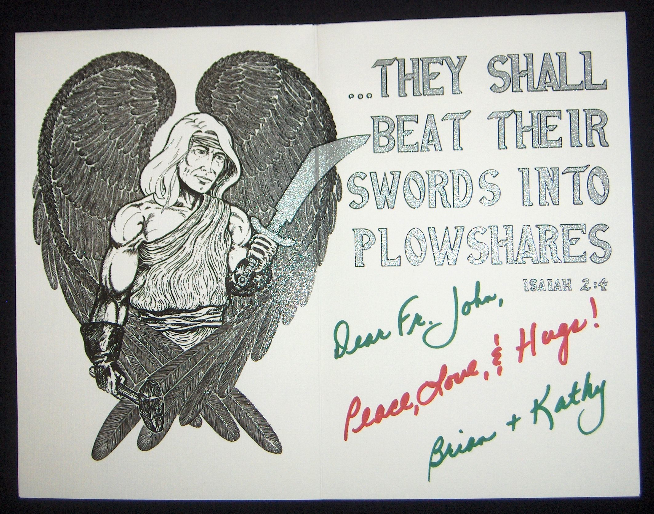 Ink, Paper, Print, Ink, Paper, Print, Kane, Brian, Brian Kane, Card, Christmas Card, Angel, Sword, Hammer, Isaiah, Plowshares