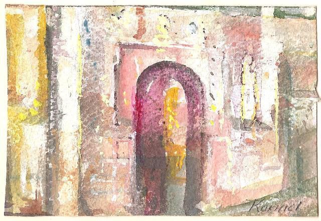 Acrylic, Paper, Painting, Acrylic, Paper, Painting, Card, Christmas Card, Doorway, Karniol, Hilda Karniol, Karniol, Hilda