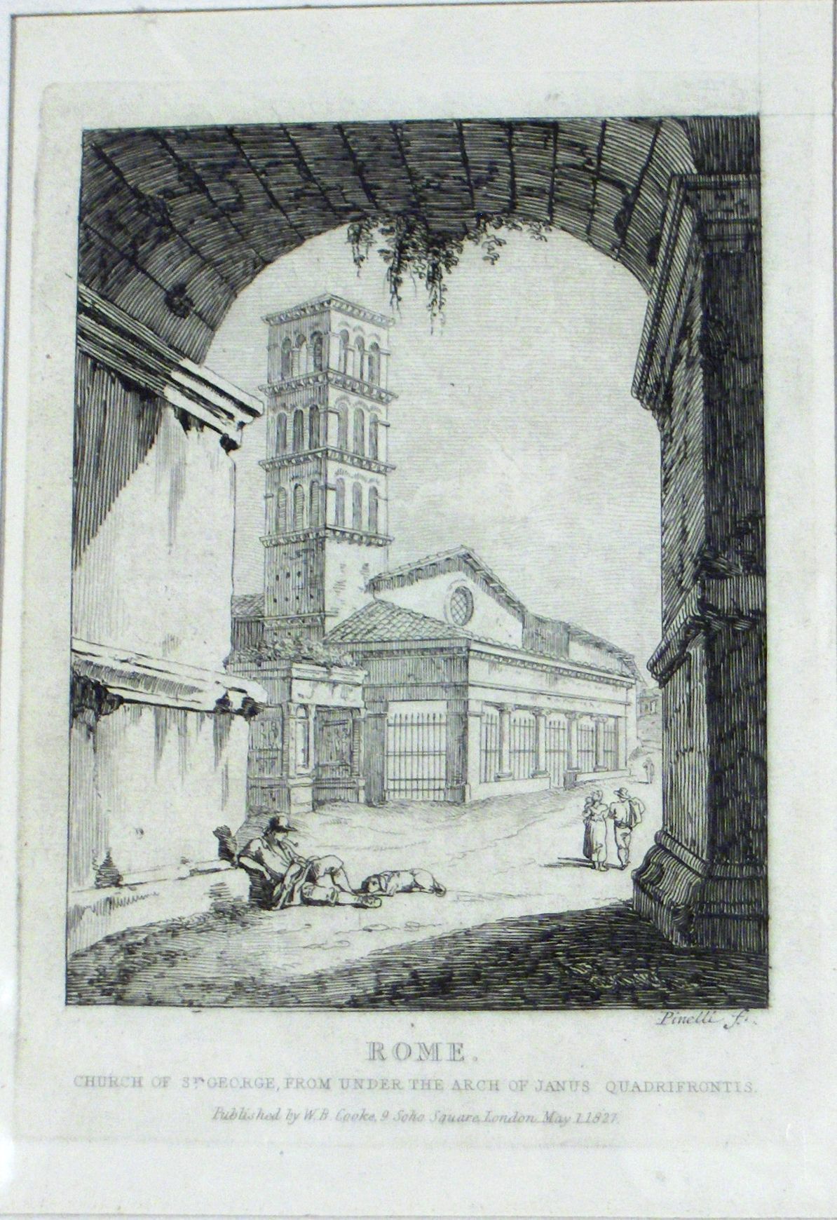Engraving, Artwork, Ink, Church of St. George, From Under the Arch of Janus Quadrifrontis, Church, Arch, Street, Stroll, Dog, Lounge, Italy, Rome, W.B. Cooke, Bartolomeo Pinelli, Twenty Five Views in Rome and its Vicinity, Engraving, Artwork, Ink