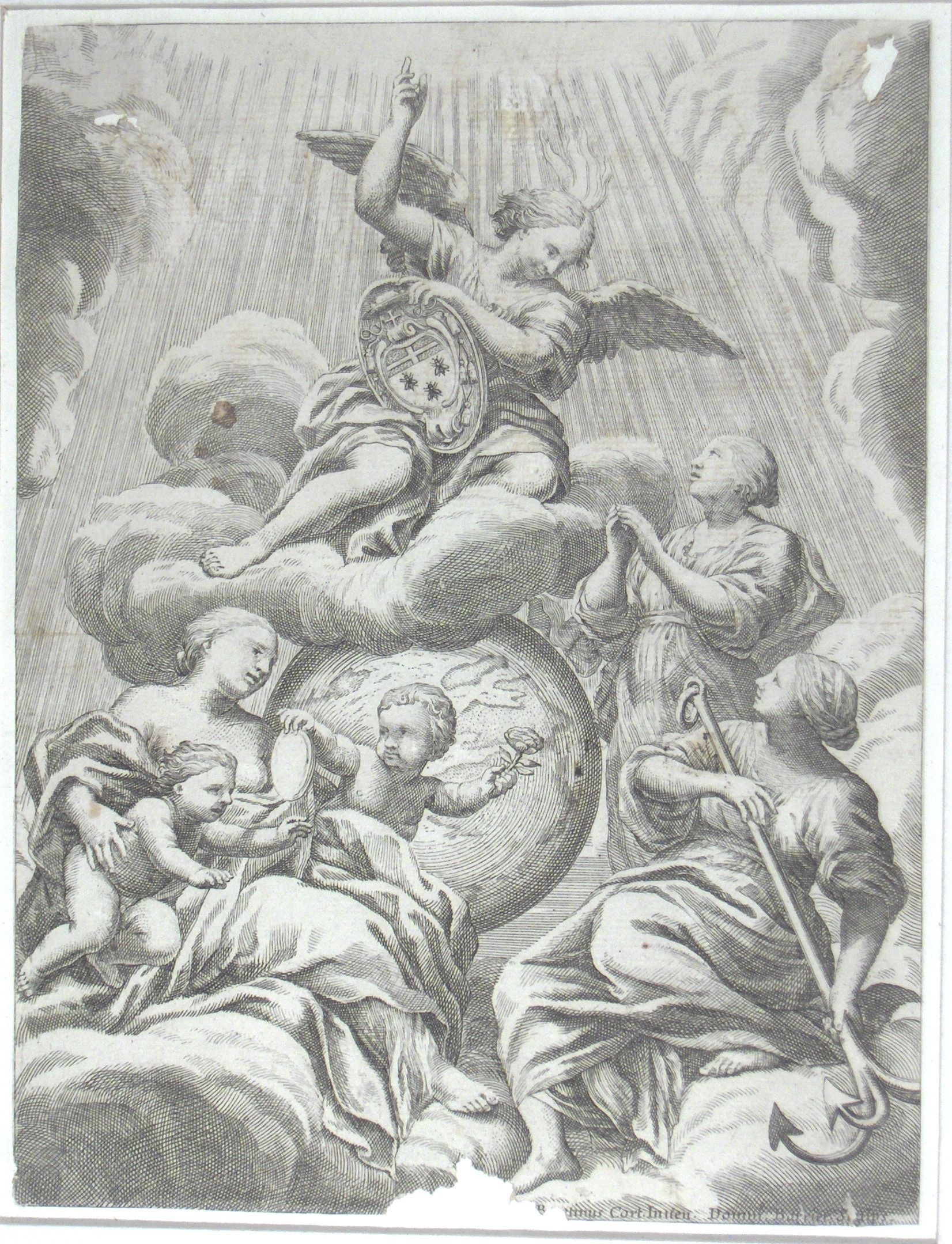 Engraving, Artwork, Ink, Angel, Clouds, Anchor, Children, Mother, Rose, Sheild, Earth, Engraving, Artwork, Ink