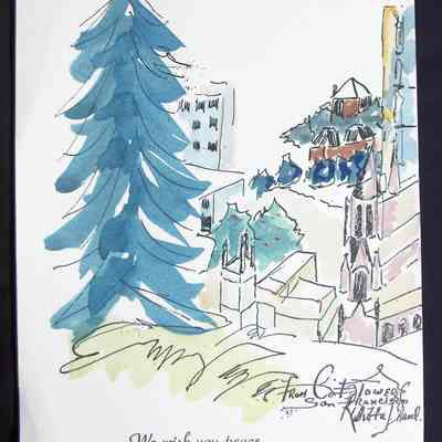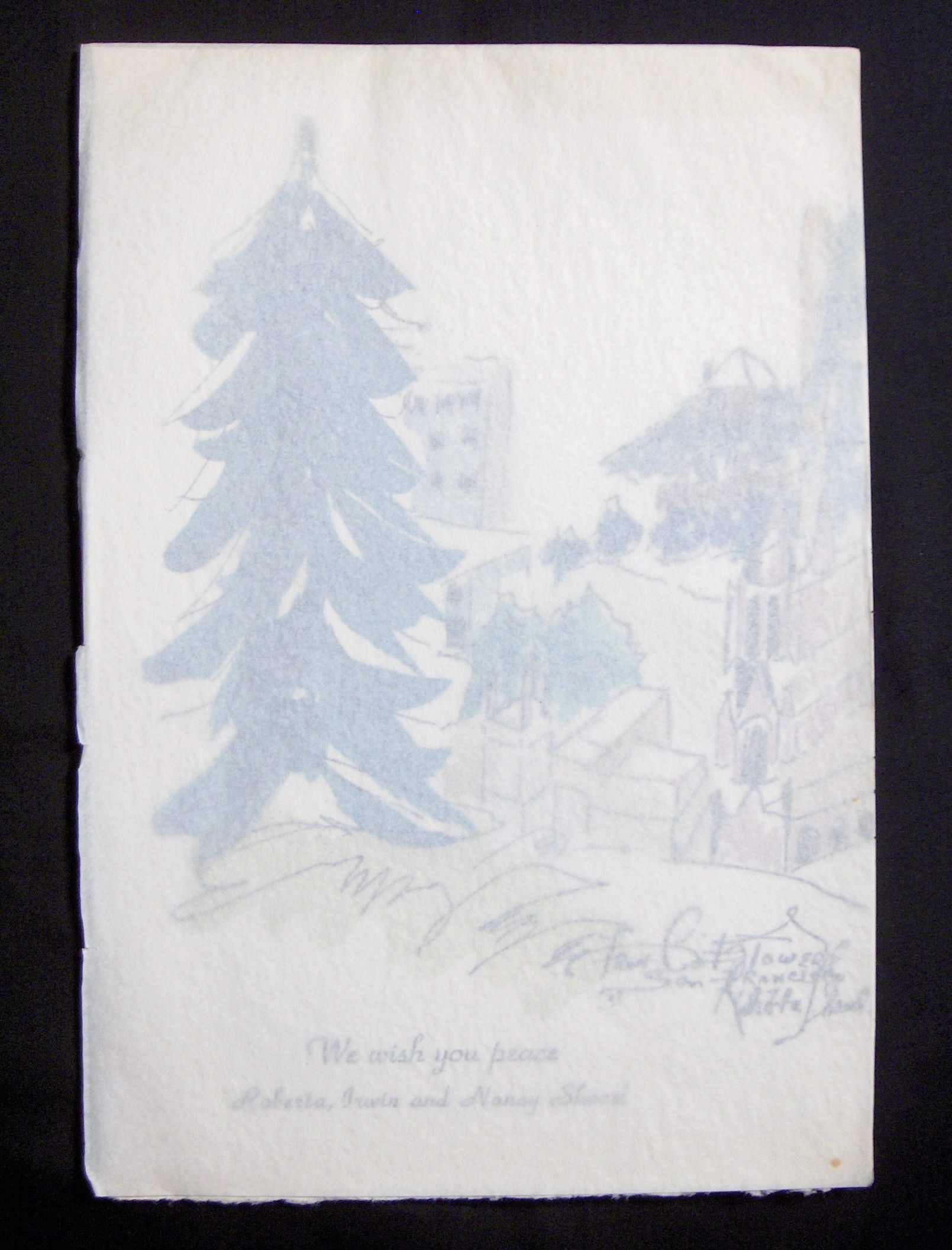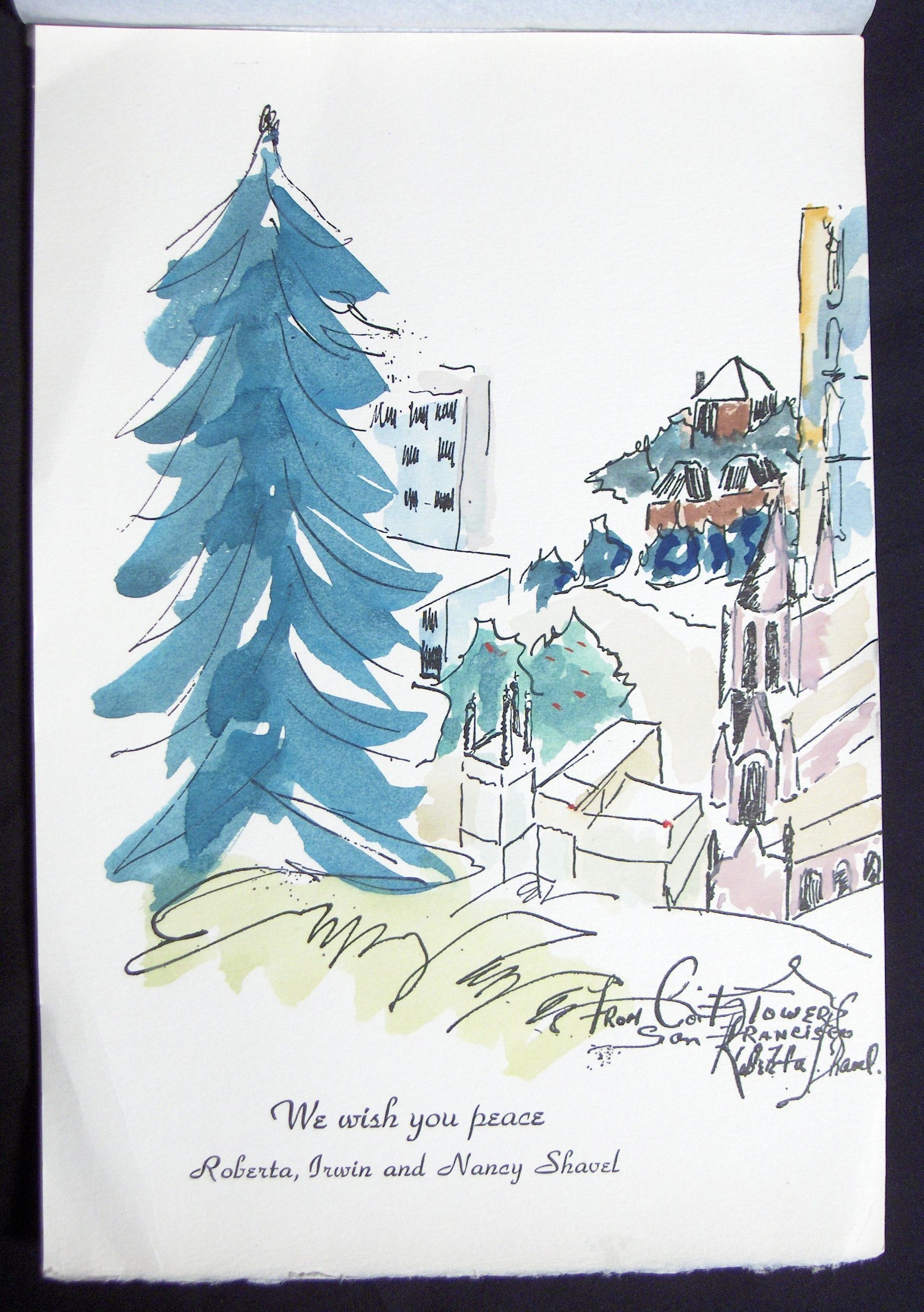 Ink, Paper, Print, Ink, Paper, Print, Card, Christmas Card, Coit Towers San Francisco, San Francisco, Watercolor, Shavel, Roberta Shavel, Shavel, Roberta