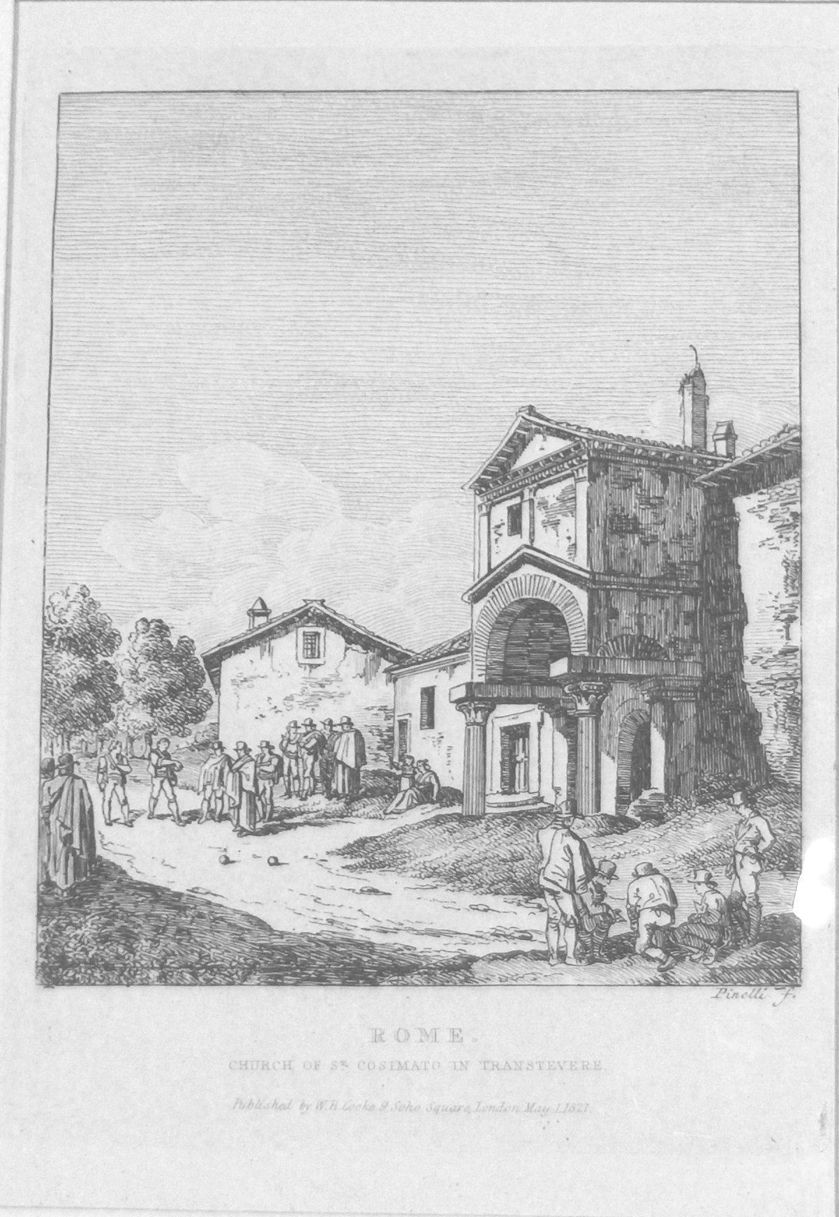 Engraving, Artwork, Ink, Convent of St. Bonaventura Built Upon the Ruins of the Palace of the Emperors, Convent, Monk, Fountain, Sea, Garden, Landscape, Rome, W.B. Cooke, Bartolomeo Pinelli, Twenty Five Views in Rome and its Vicinity, Engraving, Artwork, Ink