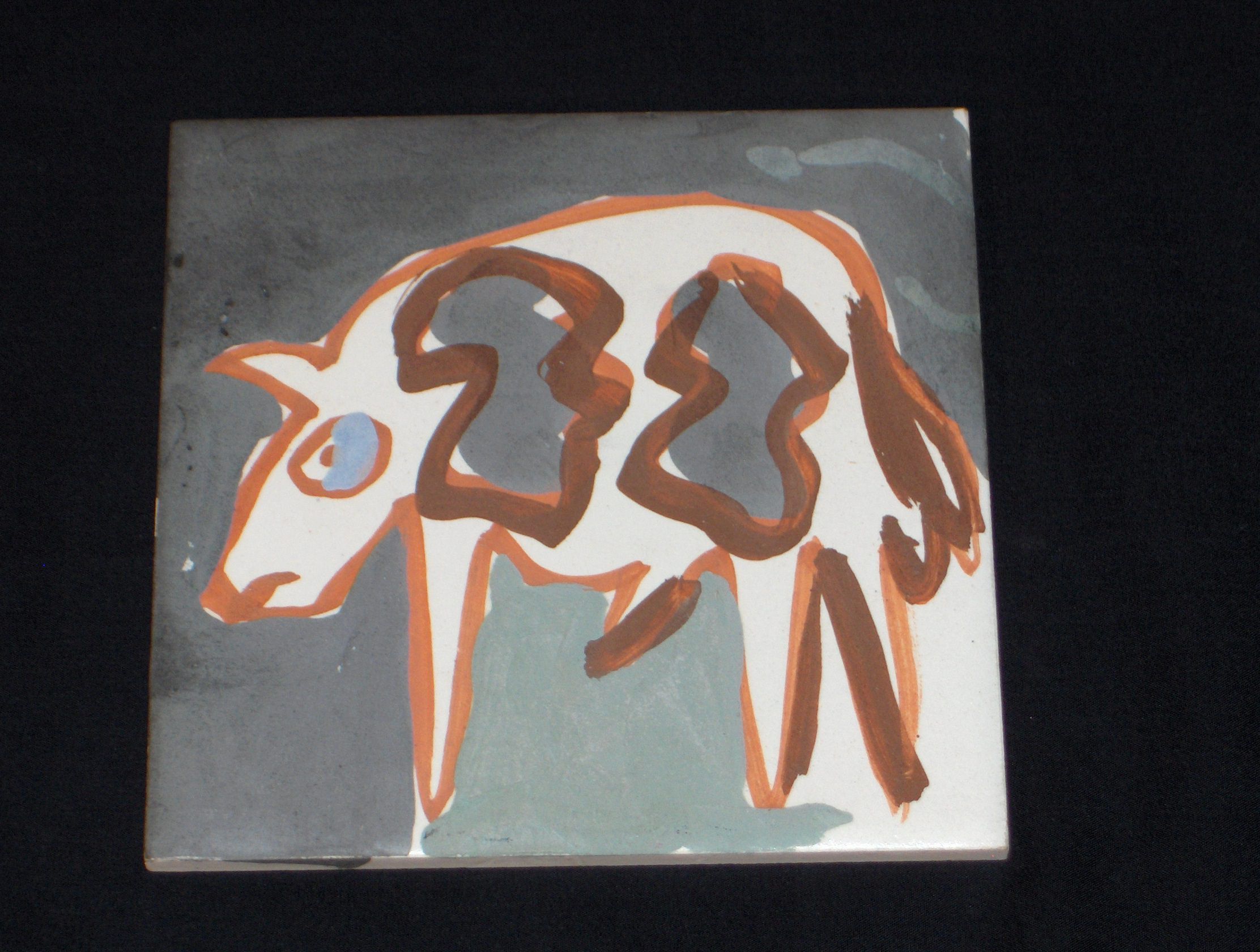 Collected By: Unknown Artist created the piece when he was a monk at Saint Vincent from 1952-68 . He was also a faculty member during this time period. The tile is part of an initial experimental study of mural making for the library mural.