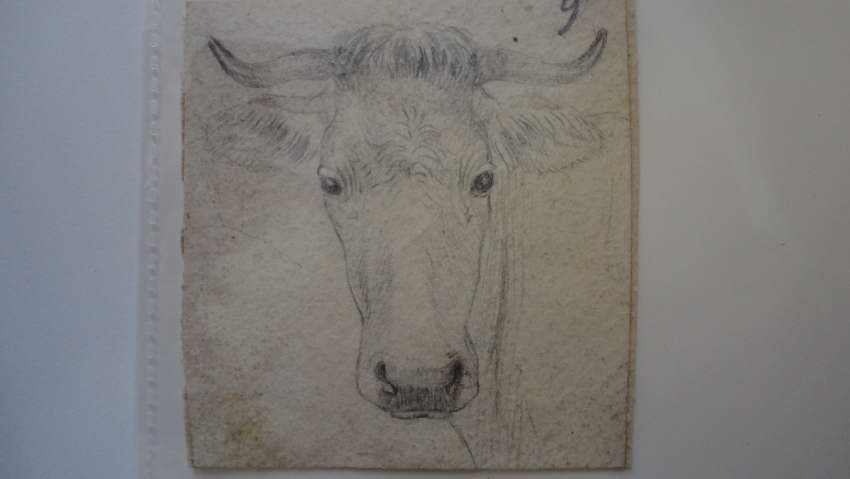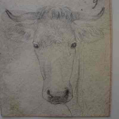 Small drawing of a cow's head facing the viewer.Collection