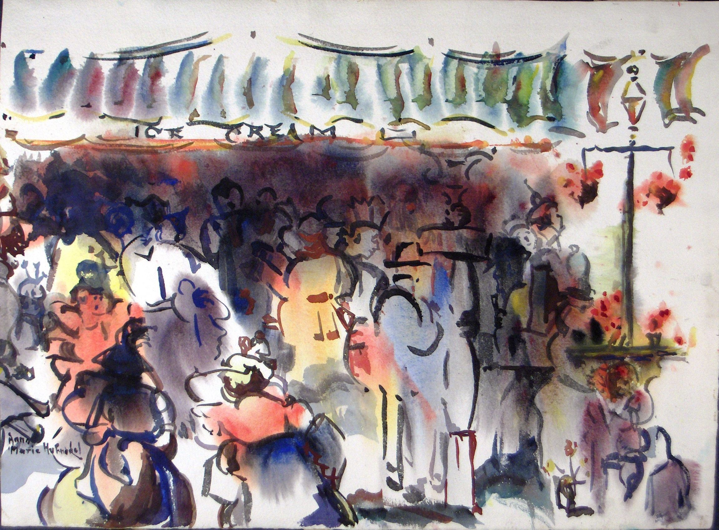 Art, Painting, Watercolor, Art, Painting, Watercolor, Streets, Street scenes, Crowds, People
