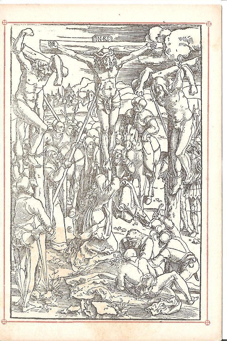 Ink, Paper, Print, Lithograph, Schongauer, Martin, Martin Schongauer, Schongauer, Albrecht Durer, Durer, Albrecht, Durer, Ink, Paper, Print, Lithograph, Prayer Cards, Religious, Religoius Subject Matter, Crucifixion, Jesus, Spear, Mary, Religious Subject Matter