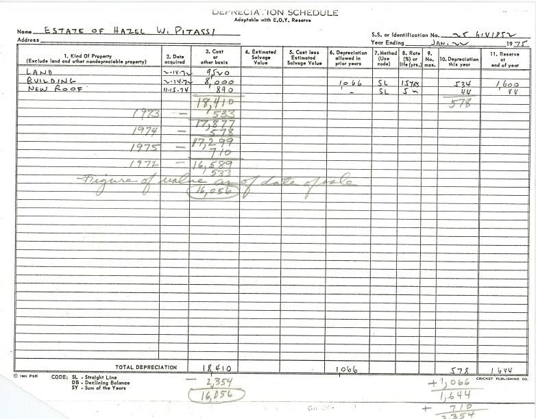 Depreciation Schedule for Estate of Hazel W. PitassiEntry/Object ID