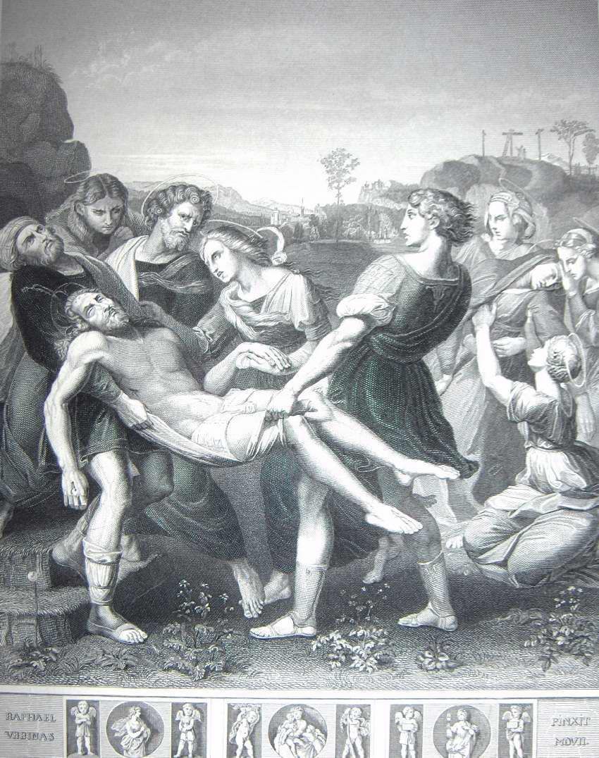 Ink, Paper, Print, Lithograph, H.A Weiske, Raphael, A.H. Payne, Payne, Weiske, Ink, Paper, Print, Lithograph, Die Grablegung, The Entombmen, Raphael's MasterpiecesDimensions