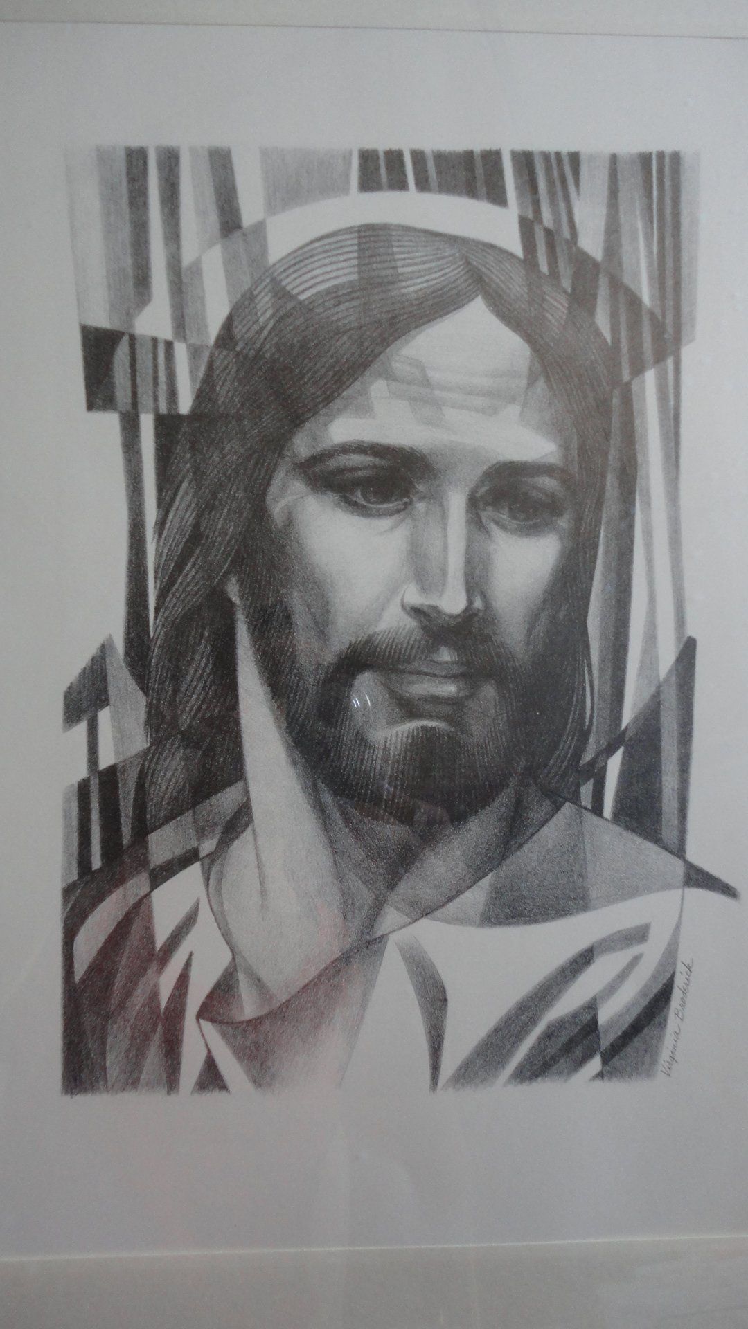 This print depicts the face of Christ surrounded by geometrical background.Collection