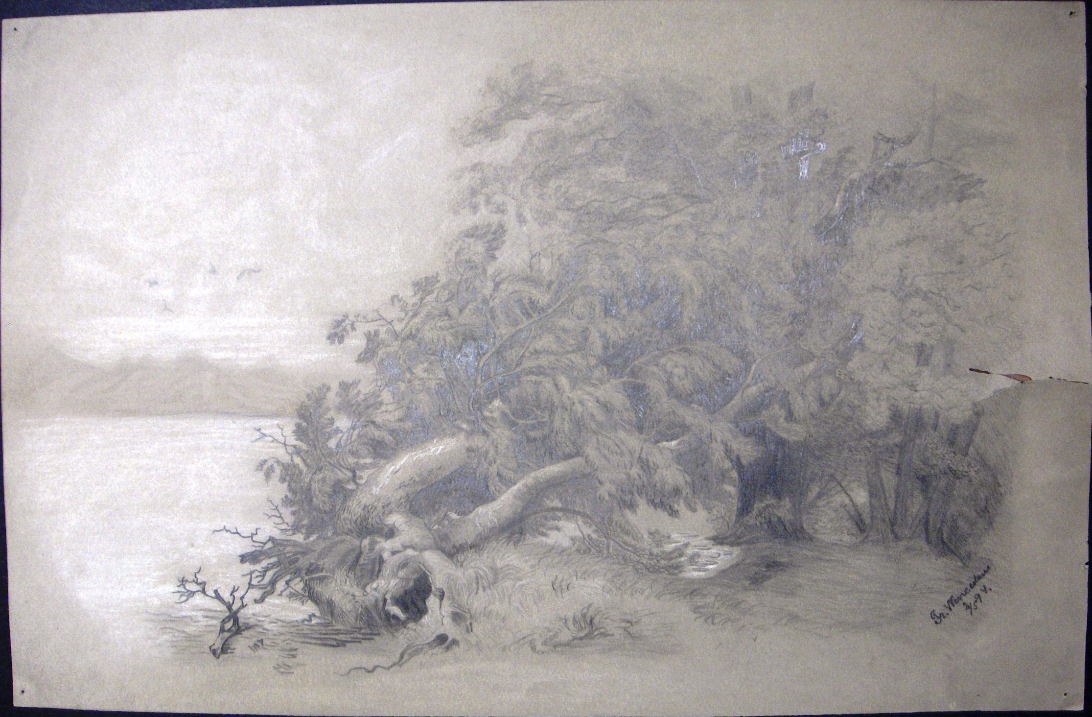 Graphite, Wash, Paper, Drawing, Trees, Graphite, Wash, Paper, DrawingDimensions