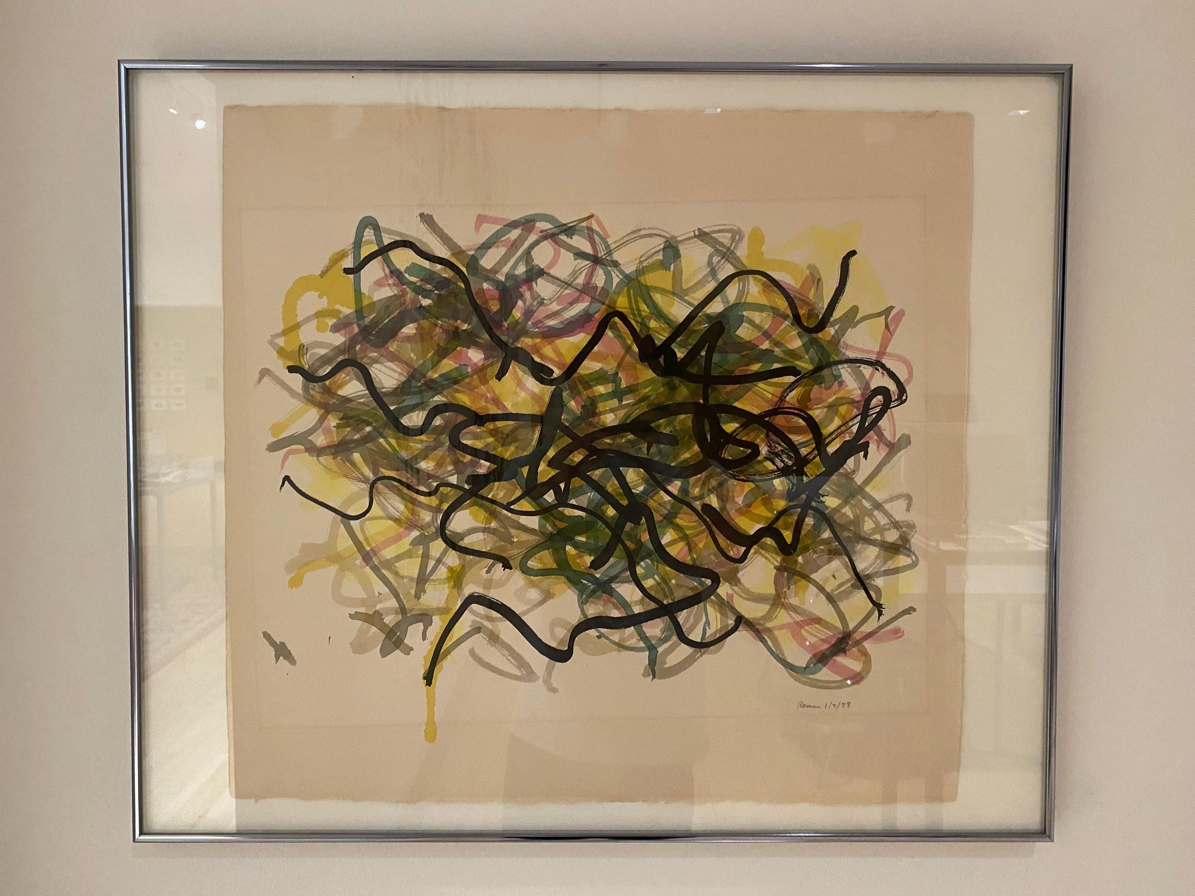 Annotated the back: “first algorithmic brush painting with color,” the technical notes “PC / DMP52 HODOS / Brushes Adapted to Plotter” and “PBA – DO2,” and the date, 11-7-88.Collection