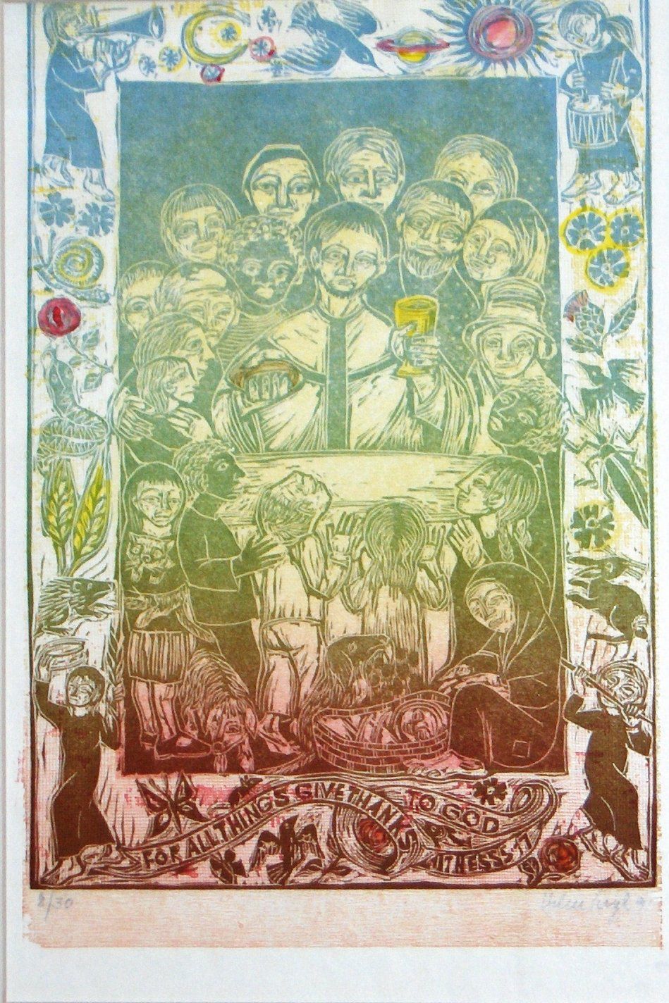 Woodcut, Print, Ink, Paper, Siegl, Helen, Helen Siegl, Siegl, Jesus, Last Supper, Communion, Children, Religious, Woodcut, Print, Ink, Paper