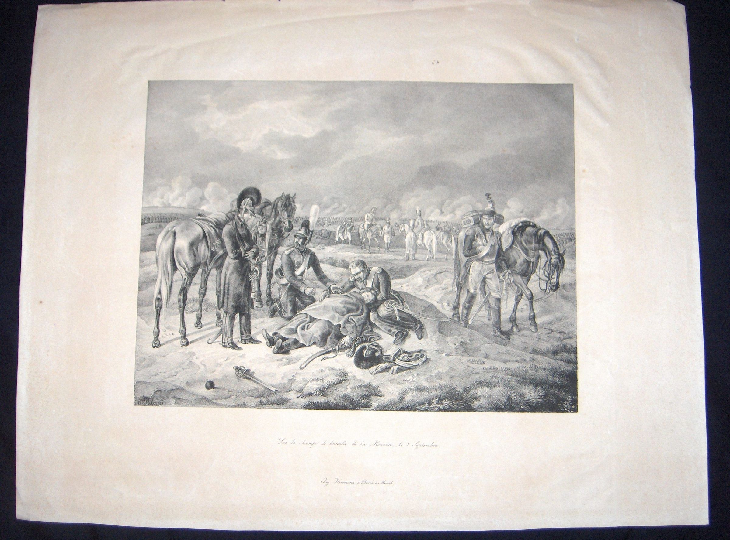 Ink, Paper, Print, Lithograph, Munich, Hermann, Ink, Paper, Print, Lithograph, Fur la champ de bataille de la Moscva, le 7 Septembre, Battle, Moscow, Russia, German, French, Soldiers, Battlefield