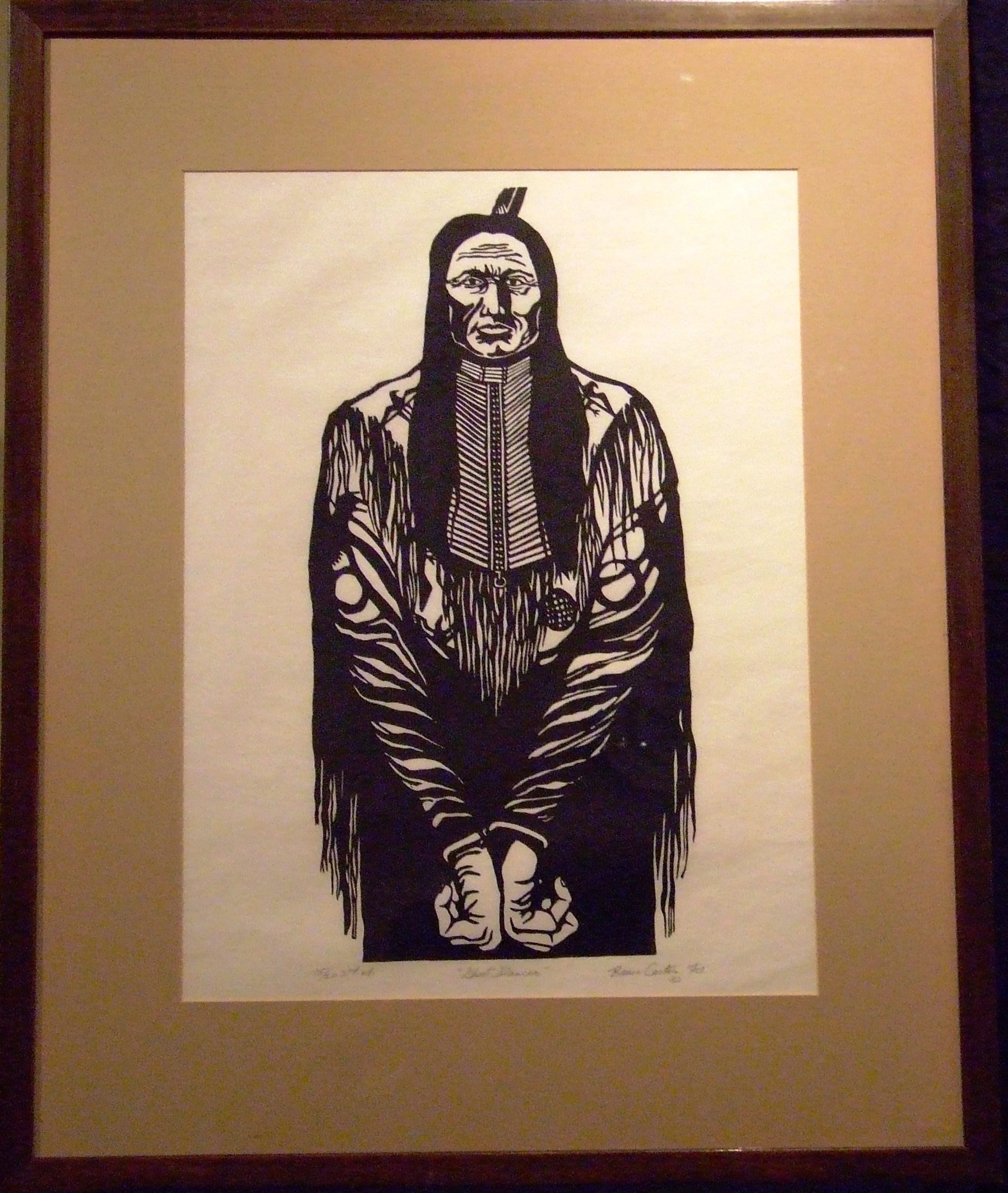 Woodcut, Ink, Paper, Print, Carter, Bruce Carter, Carter, Bruce, Woodcut, Ink, Paper, Print, Native American, Ghost Dance, Indian