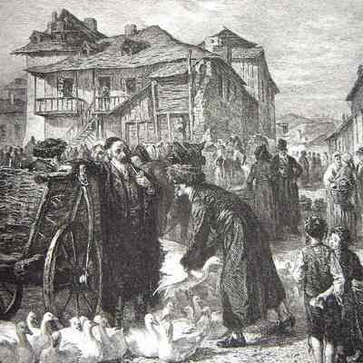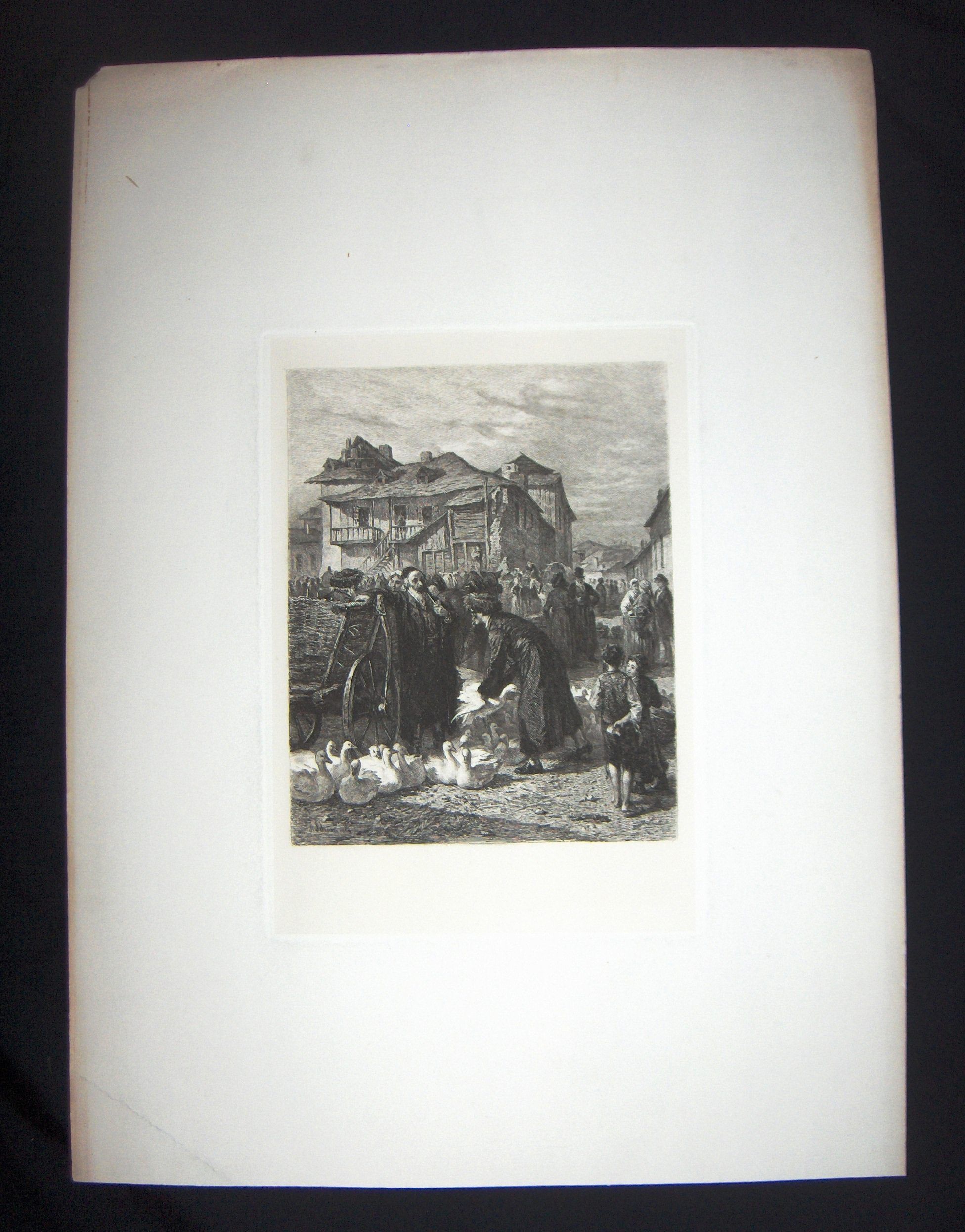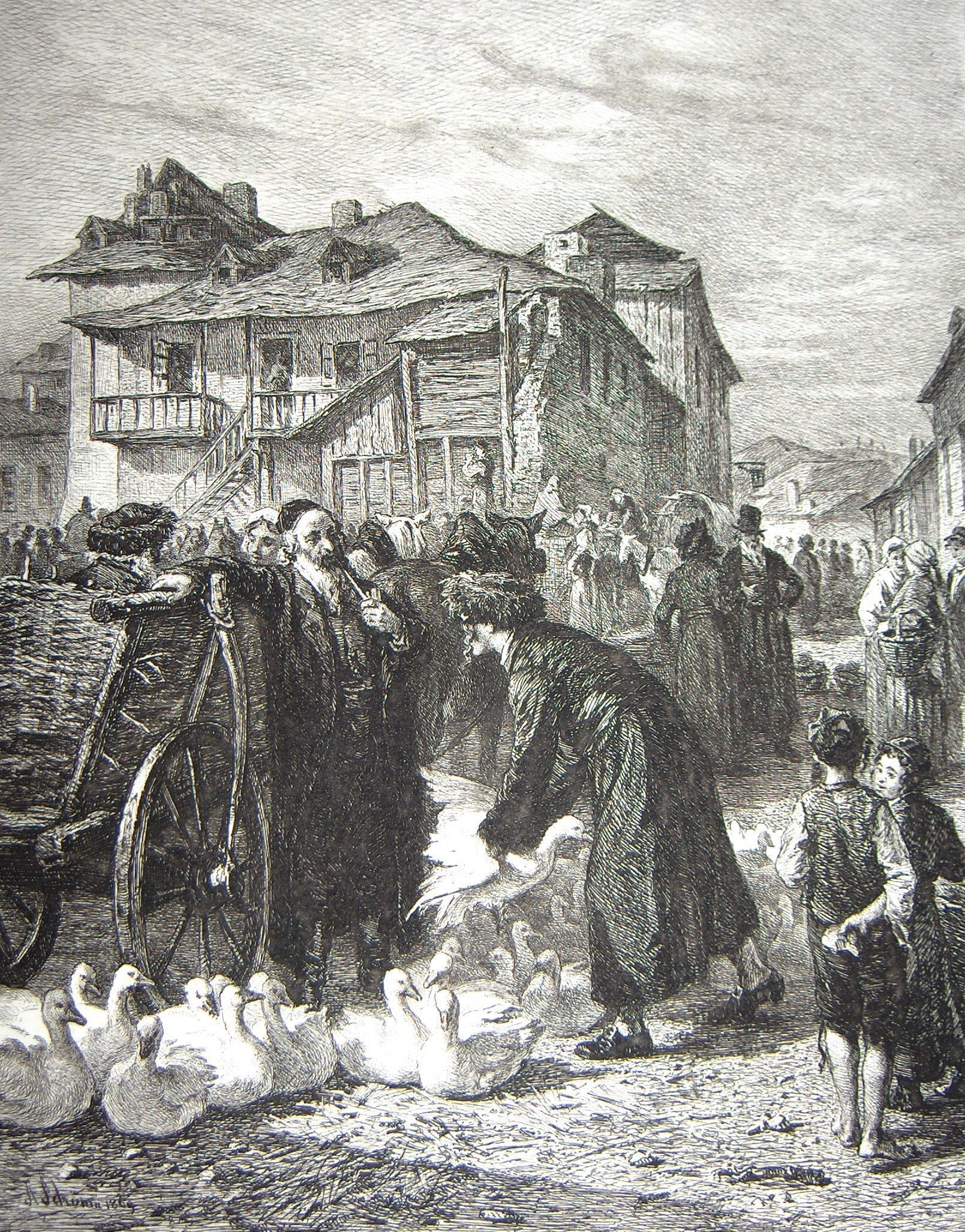 Ink, Paper, Engraving, Goose Market in Cracow, Geese, Market, People, Cracow, Alois Schonn, Schonn, Schonn, Alois, Unger, William, Unger, William Unger, Ink, Paper, Engraving