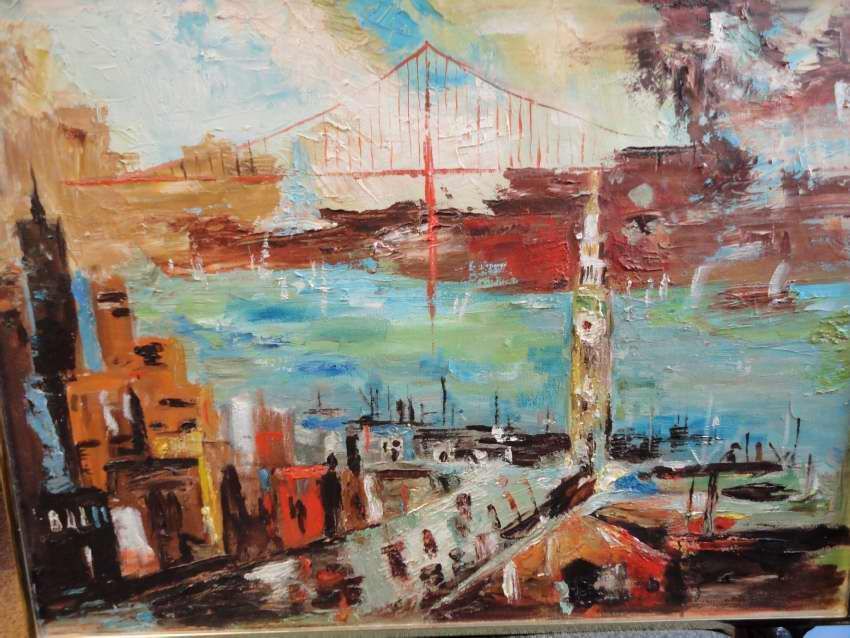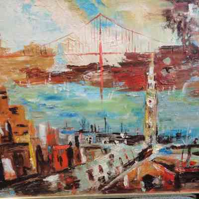 Canvas, Acrilic, San Fransisco, Water, Bridge, Cirty, Red, Blue, Green, Brown, Emily Bartles, Bartles, Canvas, Acrilic