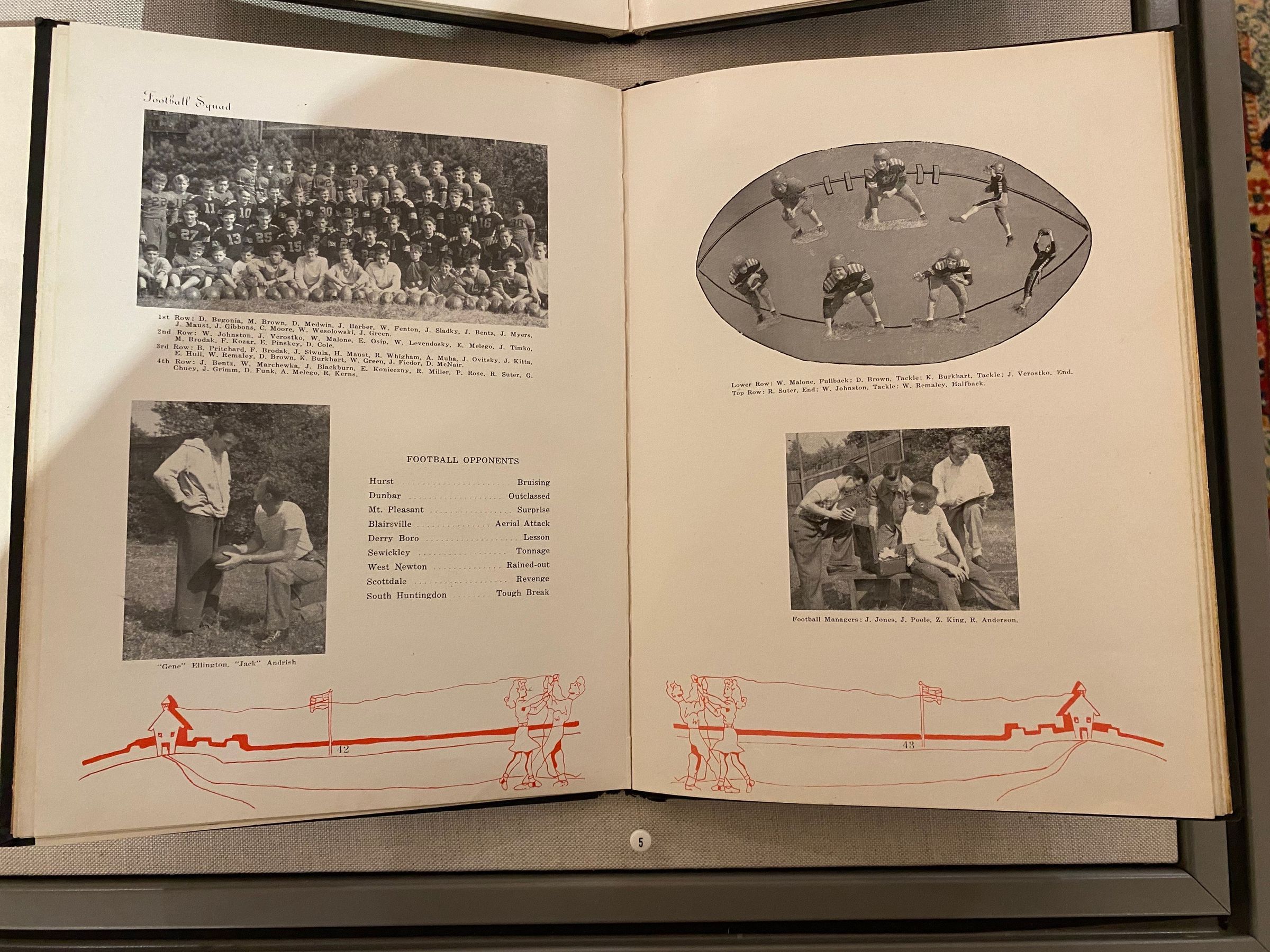 The artist Roman Verostko's high school yearbook, showing the him as a football player.Collection