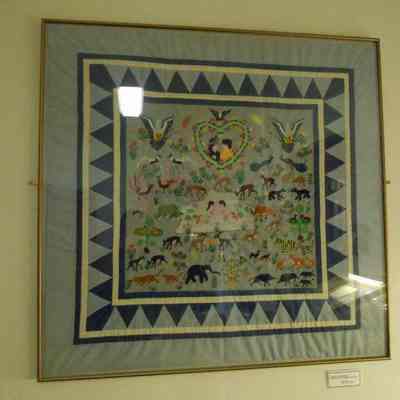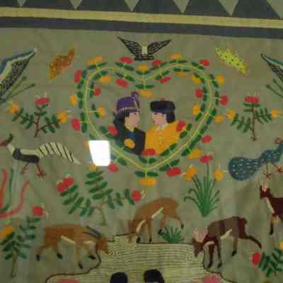 Hmong Needle work where figures are embroidered onto quilted material/fabric. Donated by Carol Pollock.Artwork Details