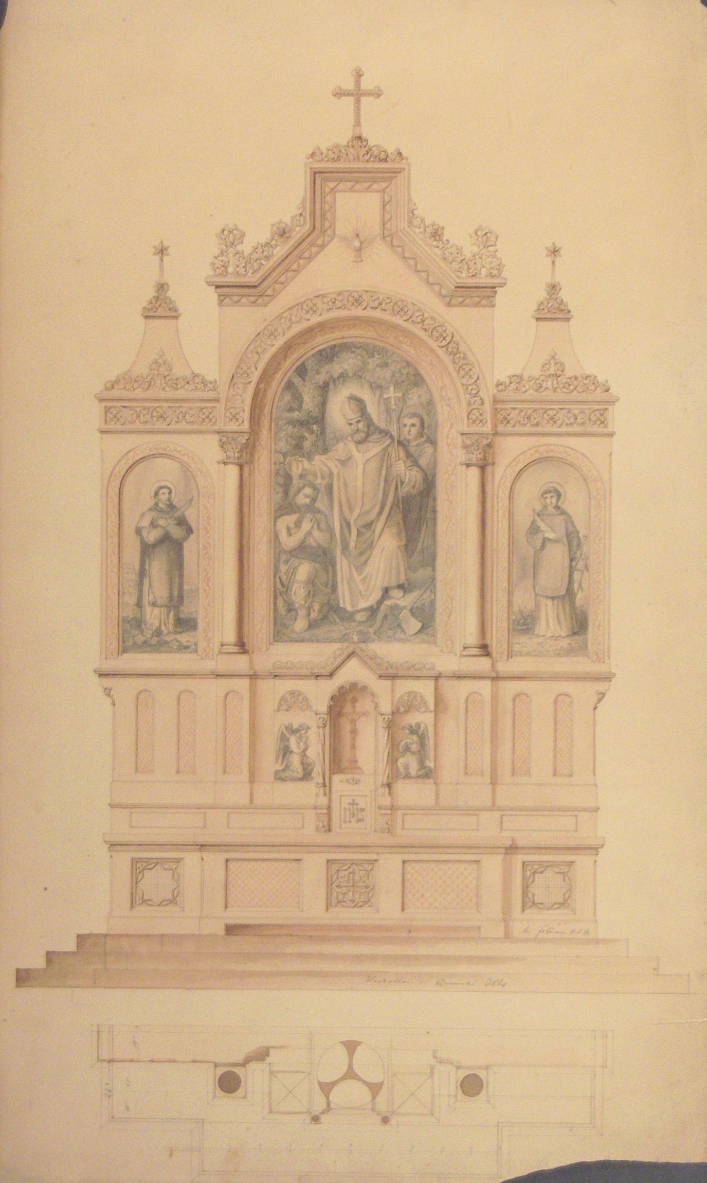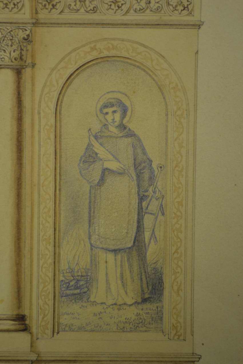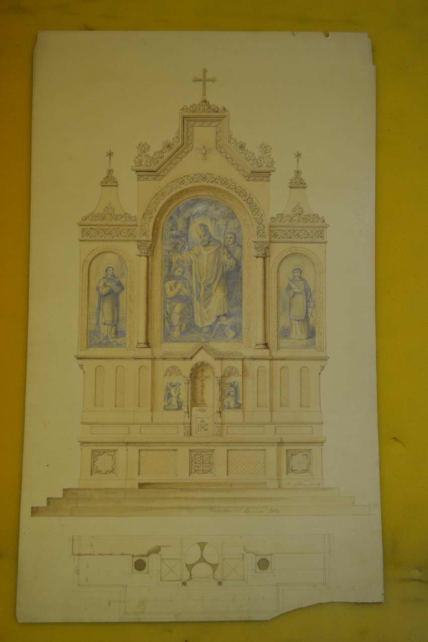 Br. Cosmas was commissioned in July 1863 to created the main altar fro $2,000 and two side altars for $500 each. He finished the job in May 1864.Artwork Details