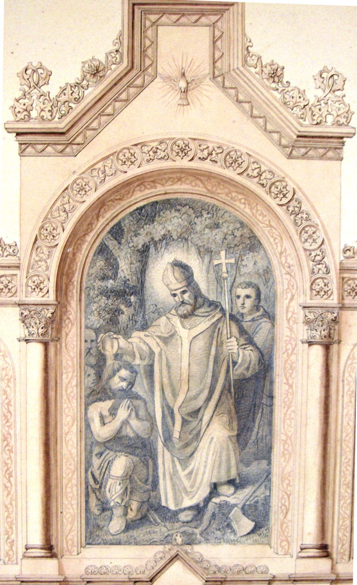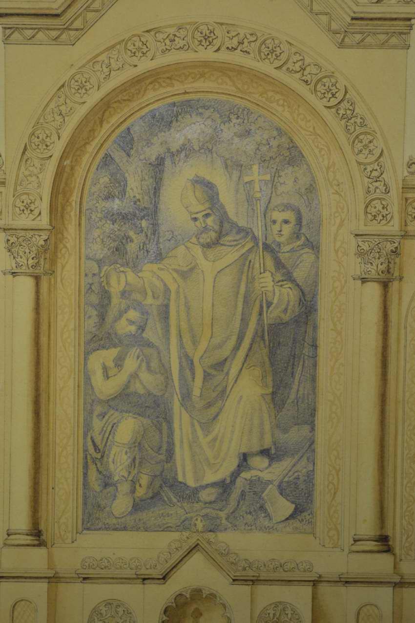 Altarpieces include St. Boniface Baptising a German, and St. Stephen and St. Lawrence.