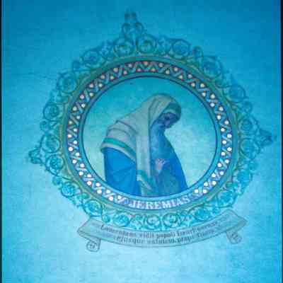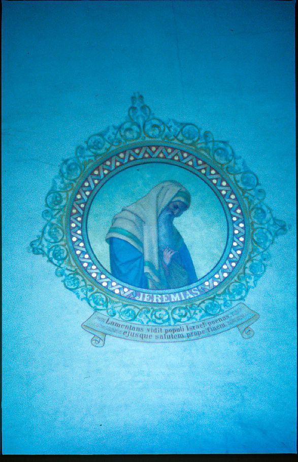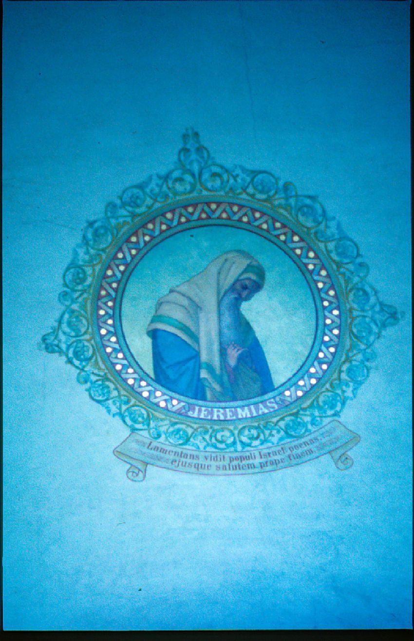 This false fresco depicts the portrait of Saint Jeremias. The inscription reads: "Lamentans vidit populi Israel penas ejusque salutem prope finem."