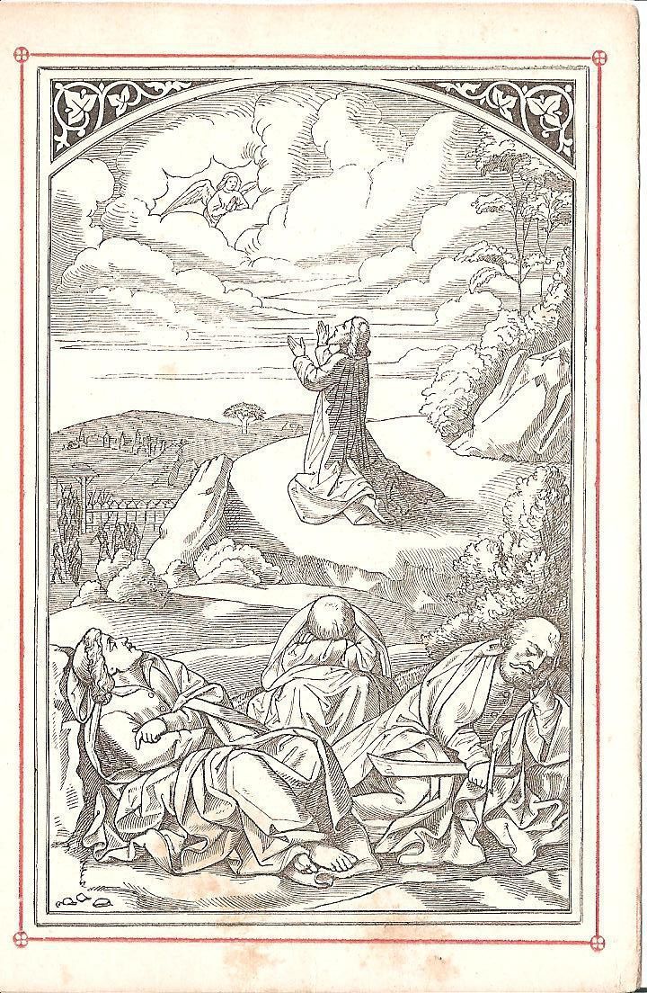 Ink, Paper, Print, Lithograph, Schongauer, Martin, Martin Schongauer, Schongauer, Albrecht Durer, Durer, Albrecht, Durer, Ink, Paper, Print, Lithograph, Prayer Cards, Religious, Religious Subject Matter, Jesus, Praying, Disciples, Garden of Gethsemane, Angel