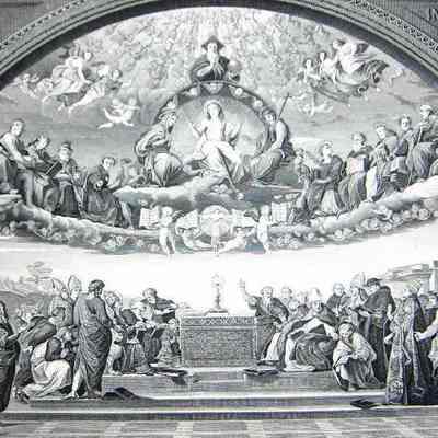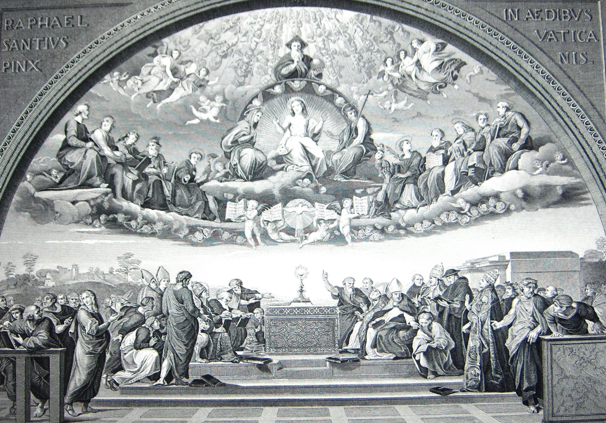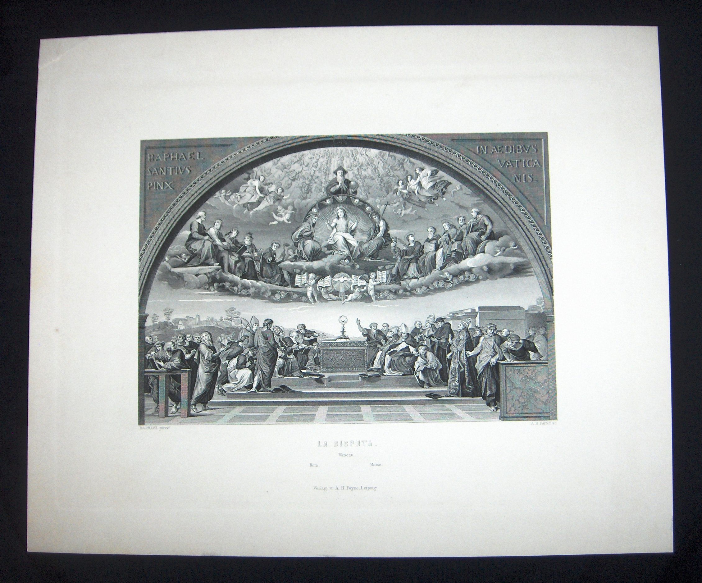 Ink, Paper, Print, Lithograph, H.A Weiske, Raphael, A.H. Payne, Payne, Weiske, Ink, Paper, Print, Lithograph, La Disputa, Raphael's MasterpiecesDimensions