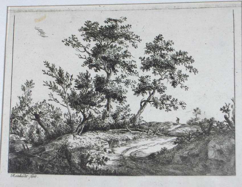 Etching, Artwork, Ink, Landscape, Trees, Fence, Road, Reinhardt, Reinhardt , Johann Christian, Etching, Artwork, Ink