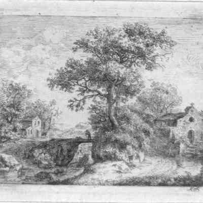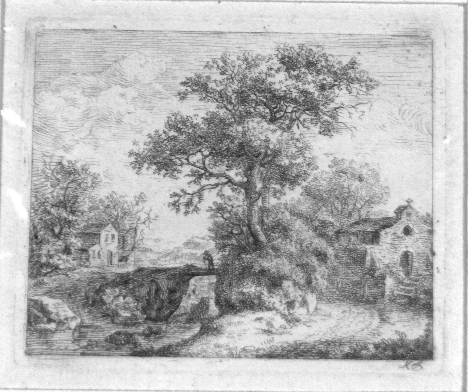 Etching, Artwork, Ink, Houses, Town, Tree, Stream, Creek, Landscape, Etching, Artwork, Ink