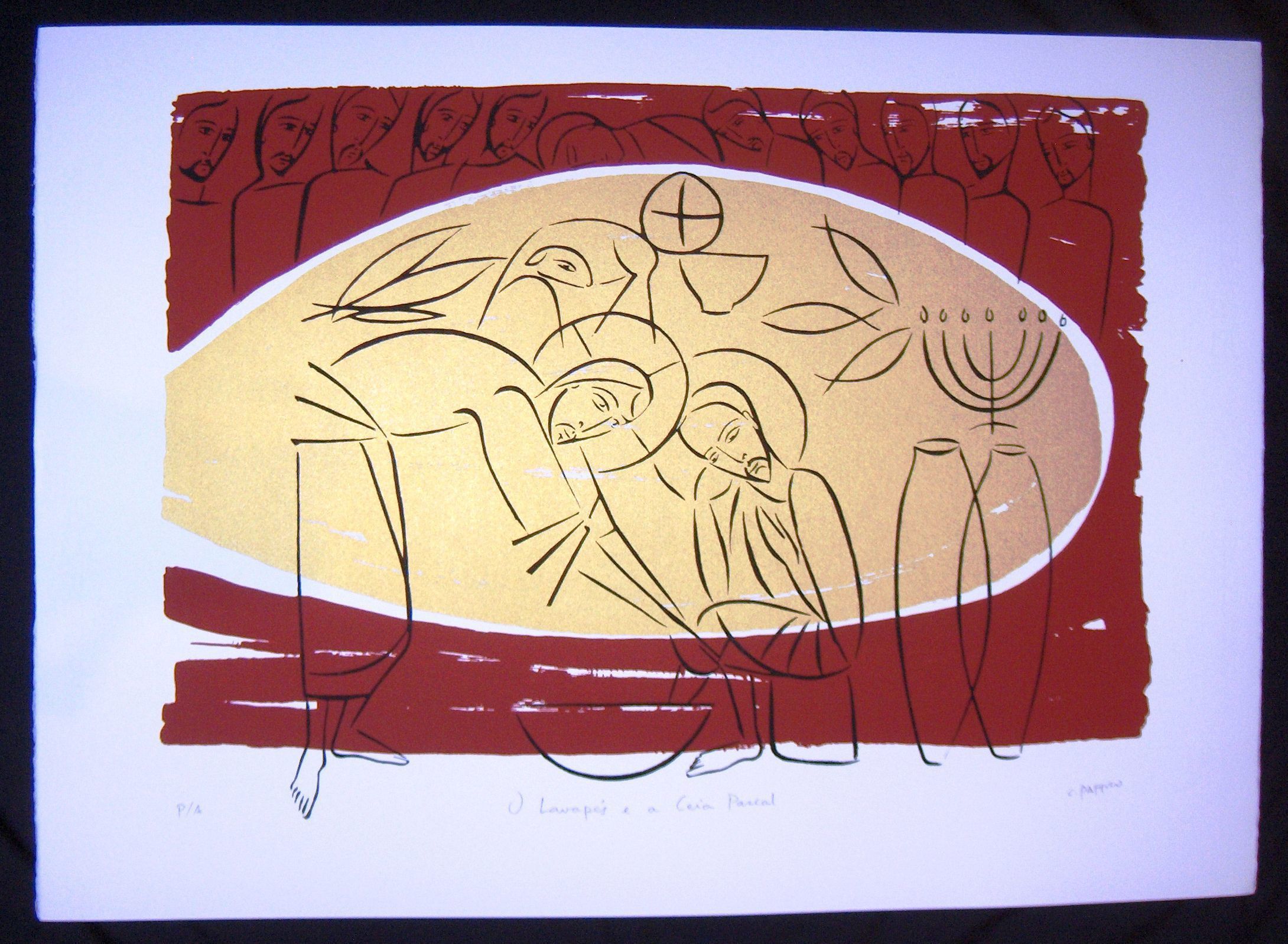 Ink, Paper, Print, Lithograph, Ink, Paper, Print, Lithograph, Archabbot Douglas Nowicki, C. Pastro, Pastro, C., Religious, Lavapes e a Ceia Pascal