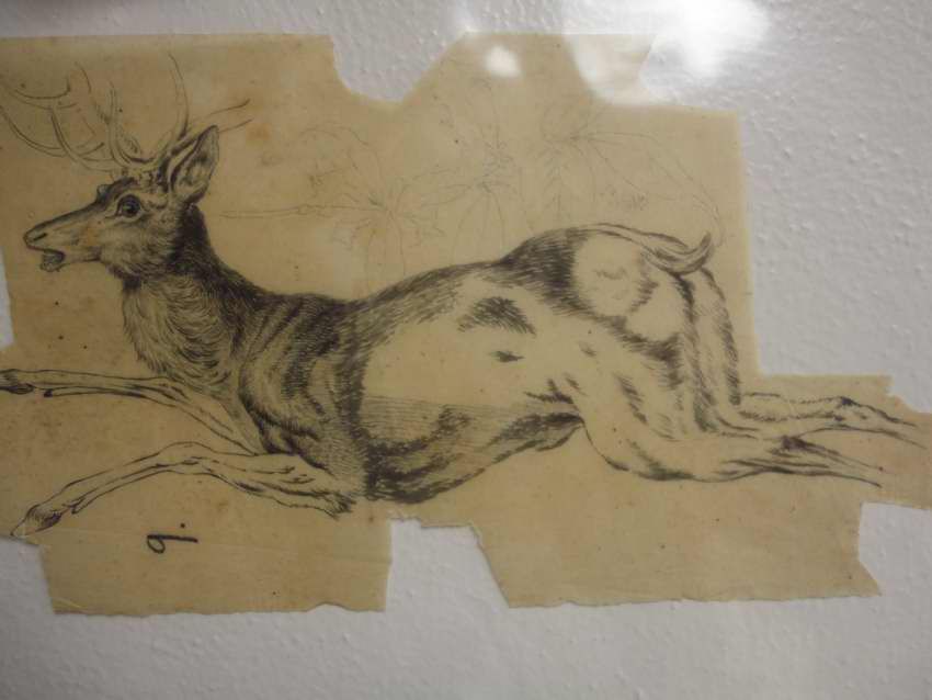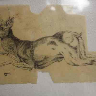 This piece depicts a deer that looks like it was taken by suprise. It's body is spread out in leaping position.Artwork Details