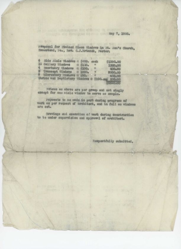 Letter from Leo Pitassi to C. J. Hrtanek, submitting proposed prices for windows at St. Ann's Church in Homestead, PA.Collection