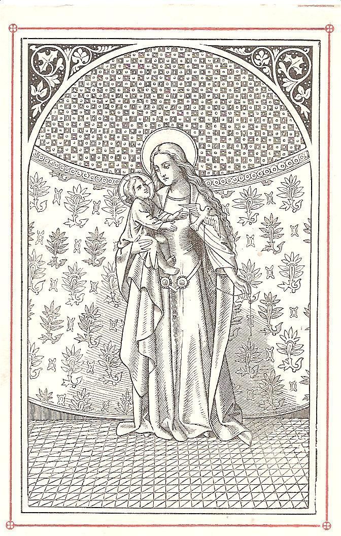 Ink, Paper, Print, Lithograph, Schongauer, Martin, Martin Schongauer, Schongauer, Albrecht Durer, Durer, Albrecht, Durer, Ink, Paper, Print, Lithograph, Prayer Cards, Religious, Religious Subject Matter, Mary, Madonna, Dove, Baby Jesus, Child
