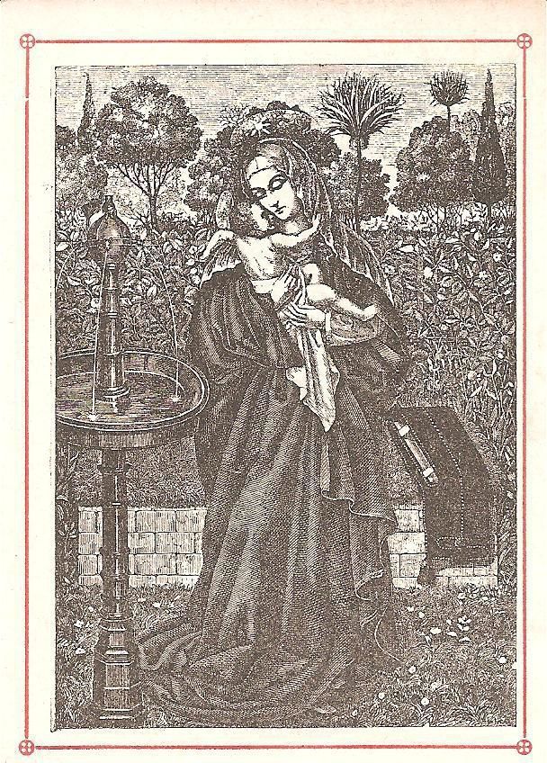 Ink, Paper, Print, Lithograph, Schongauer, Martin, Martin Schongauer, Schongauer, Albrecht Durer, Durer, Albrecht, Durer, Ink, Paper, Print, Lithograph, Prayer Cards, Religious, Religious Subject Matter, Madonna, Child, Baby Jesus, Garden, Mary