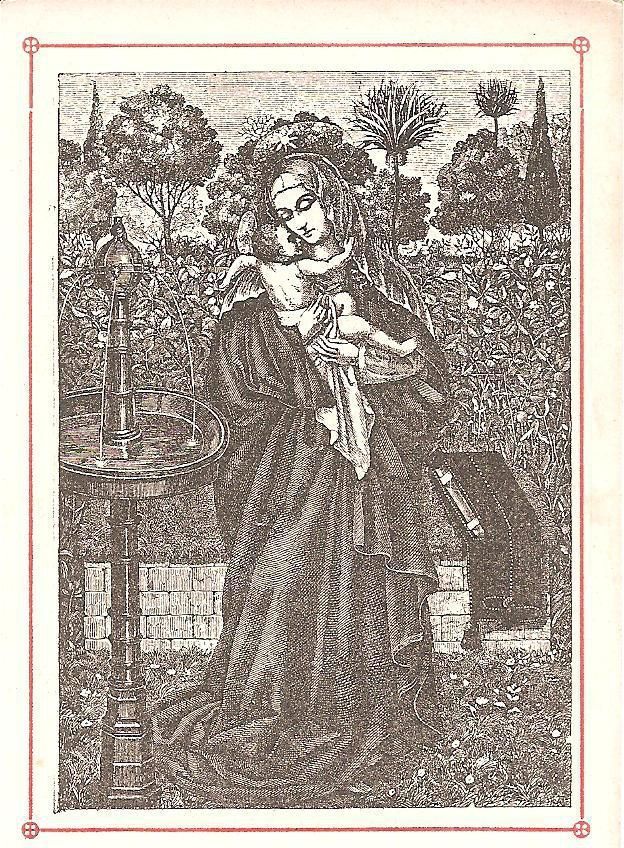 Ink, Paper, Print, Lithograph, Schongauer, Martin, Martin Schongauer, Schongauer, Albrecht Durer, Durer, Albrecht, Durer, Ink, Paper, Print, Lithograph, Prayer Cards, Religious, Religious Subject Matter, Madonna, Child, Baby Jesus, Garden, Mary